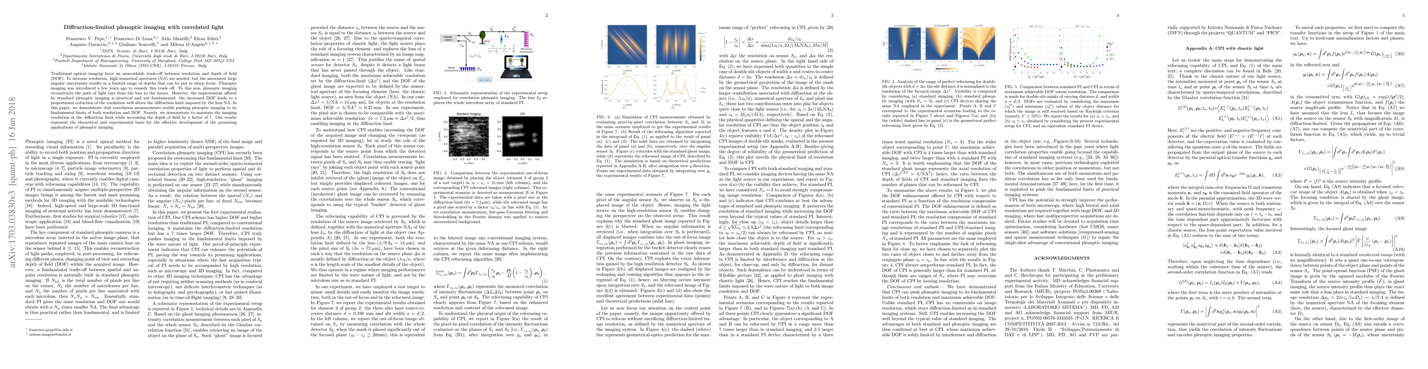 This paper demonstrates that correlated light measurements can push plenoptic imaging to its fundamental limits, achieving diffraction-limited resolution while increasing the depth of field by a factor of 7, thus overcoming the traditional trade-off between resolution and depth of field.