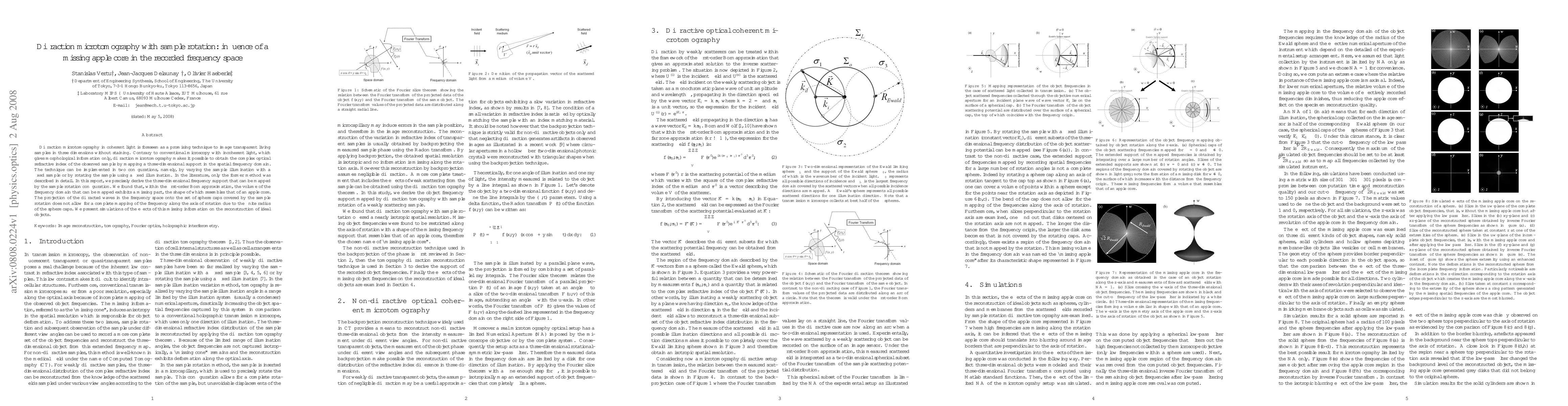 Diffraction microtomography in coherent light is foreseen as a promising technique to image transparent living samples in three dimensions without staining. Contrary to conventional microscopy with incoherent light, which gives morphological information only, diffraction microtomography makes it possible to obtain the complex optical refractive index of the observed sample by mapping a three-dimensional support in the spatial frequency domain. The technique can be implemented in two configurations, namely, by varying the sample illumination with a fixed sample or by rotating the sample using a fixed illumination. In the literature, only the former method was described in detail. In this report, we precisely derive the three-dimensional frequency support that can be mapped by the sample rotation configuration. We found that, within the first-order Born approximation, the volume of the frequency domain that can be mapped exhibits a missing part, the shape of which resembles that of an apple core. The projection of the diffracted waves in the frequency space onto the set of sphere caps covered by the sample rotation does not allow for a complete mapping of the frequency along the axis of rotation due to the finite radius of the sphere caps. We present simulations of the effects of this missing information on the reconstruction of ideal objects.