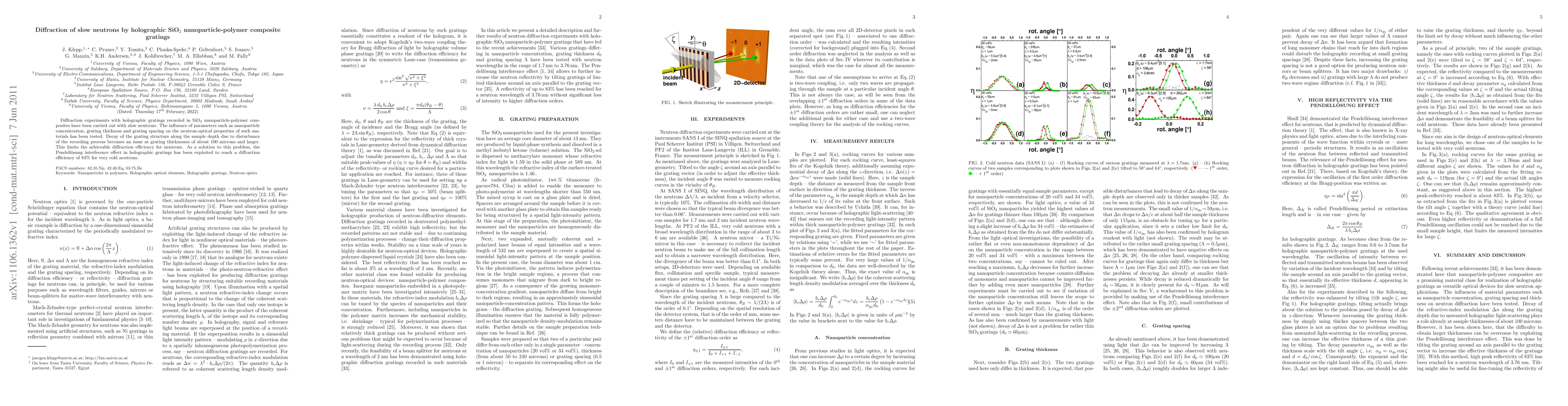 Diffraction experiments with holographic gratings recorded in SiO$_2$ nanoparticle-polymer composites have been carried out with slow neutrons. The influence of parameters such as nanoparticle concentration, grating thickness and grating spacing on the neutron-optical properties of such materials has been tested. Decay of the grating structure along the sample depth due to disturbance of the recording process becomes an issue at grating thicknesses of about 100 microns and larger. This limits the achievable diffraction efficiency for neutrons. As a solution to this problem, the Pendell\"{o}sung interference effect in holographic gratings has been exploited to reach a diffraction efficiency of 83% for very cold neutrons.
