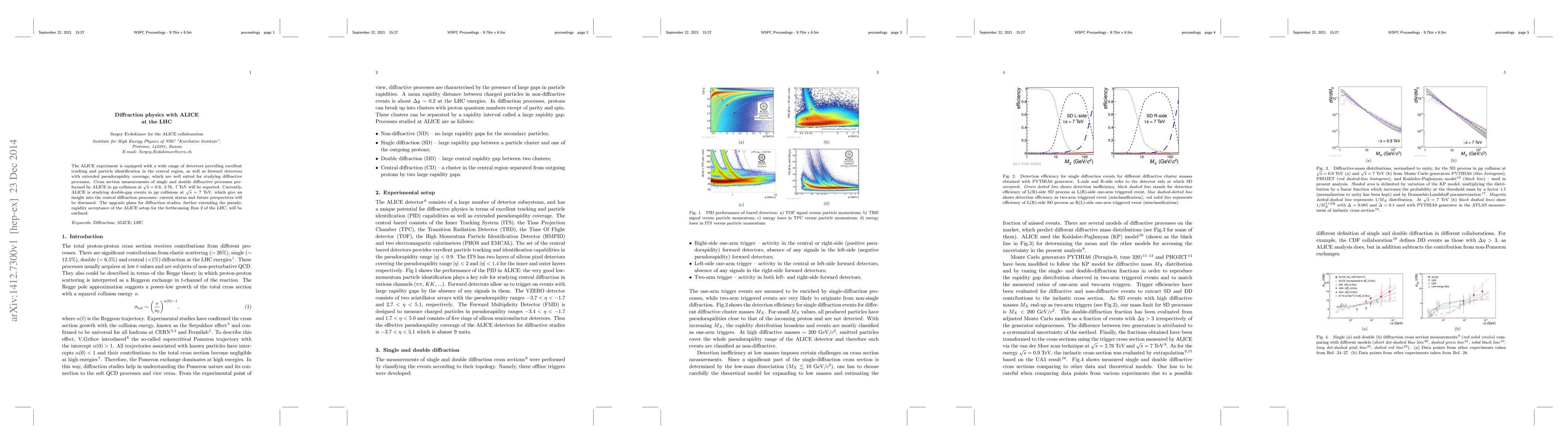 Researchers at ALICE experiment measure diffractive processes in high-energy collisions, focusing on single and double diffraction with upgraded detectors for future Run 2 analysis.
