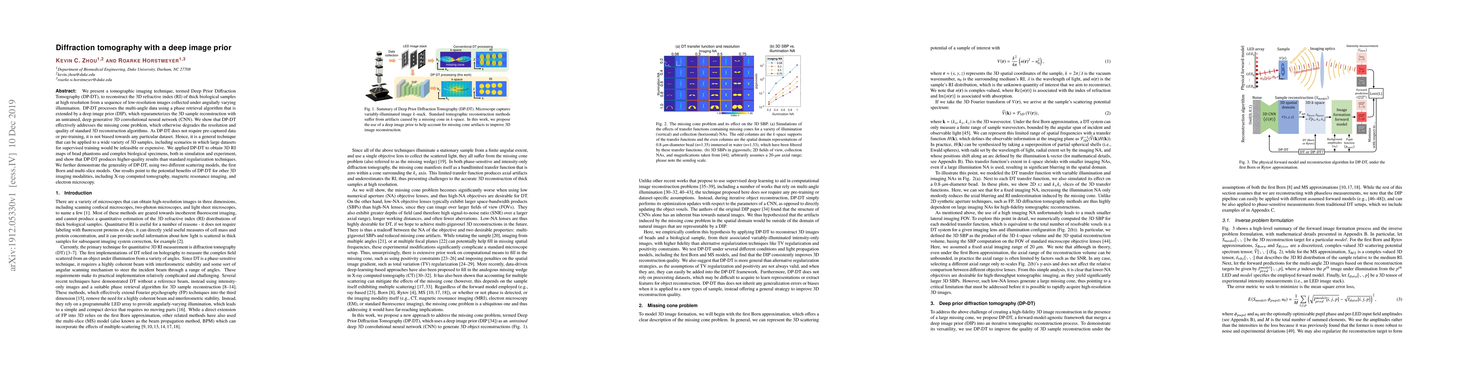 A new tomographic imaging technique called Deep Prior Diffraction Tomography (DP-DT) uses a deep neural network to reconstruct the 3D refractive index of thick biological samples from low-resolution images, producing higher-quality results than standard techniques.