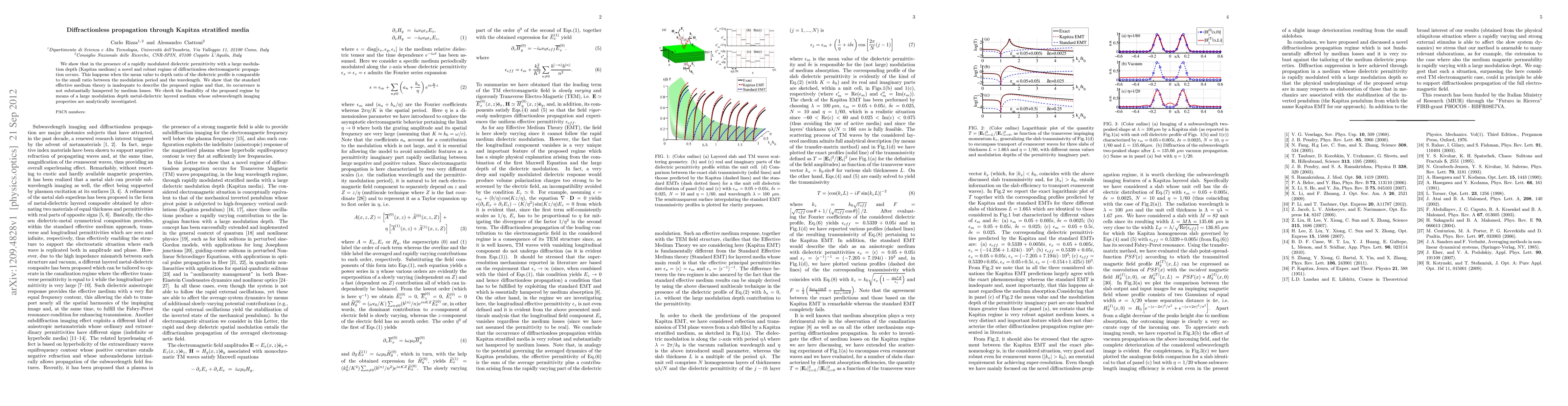 We show that in the presence of a rapidly modulated dielectric permittivity with a large modulation depth (Kapitza medium) a novel and robust regime of diffractionless electromagnetic propagation occurs. This happens when the mean value to depth ratio of the dielectric profile is comparable to the small ratio between the modulation period and the wavelength. We show that the standard effective medium theory is inadequate to describe the proposed regime and that, its occurrence is not substantially hampered by medium losses. We check the feasibility of the proposed regime by means of a large modulation depth metal-dielectric layered medium whose subwavelength imaging properties are analytically investigated.