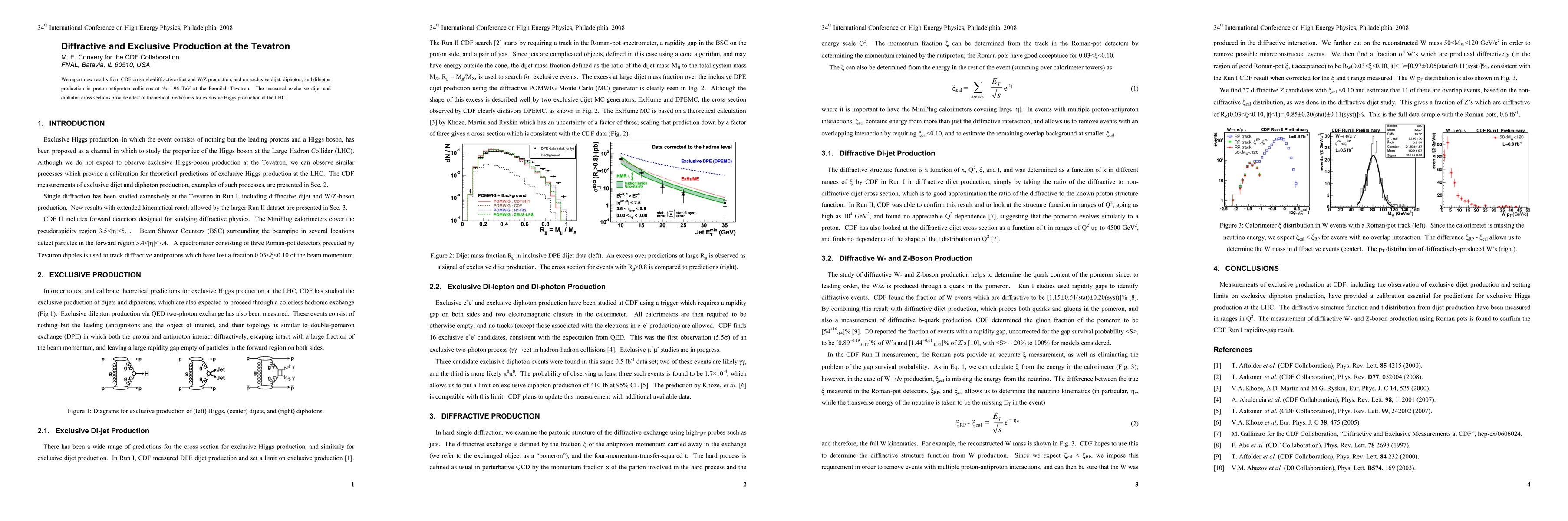 This paper from CDF presents new data on single-diffractive dijet and W/Z production, along with exclusive dijet, diphoton, and dilepton production in proton-antiproton collisions at the Tevatron. The findings offer a test of theoretical predictions for exclusive Higgs production at the LHC.