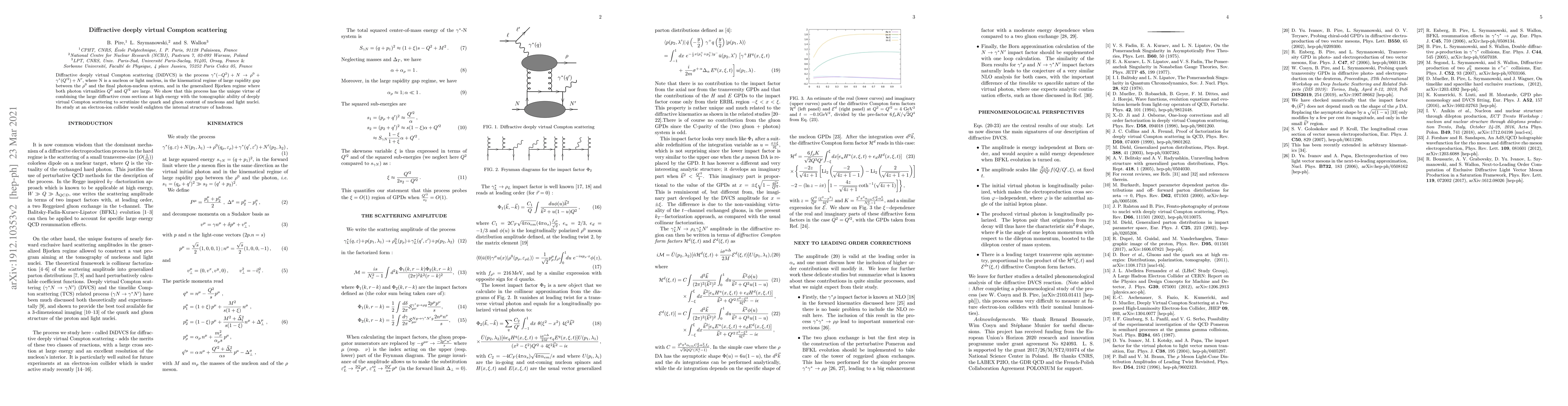 Diffractive deeply virtual Compton scattering (DiDVCS) combines high-energy diffractive cross sections with deeply virtual Compton scattering's tomographic capability to examine nucleon and light nucleus internal structure. Studying DiDVCS at an electron-ion collider would provide insights into hadron composition.