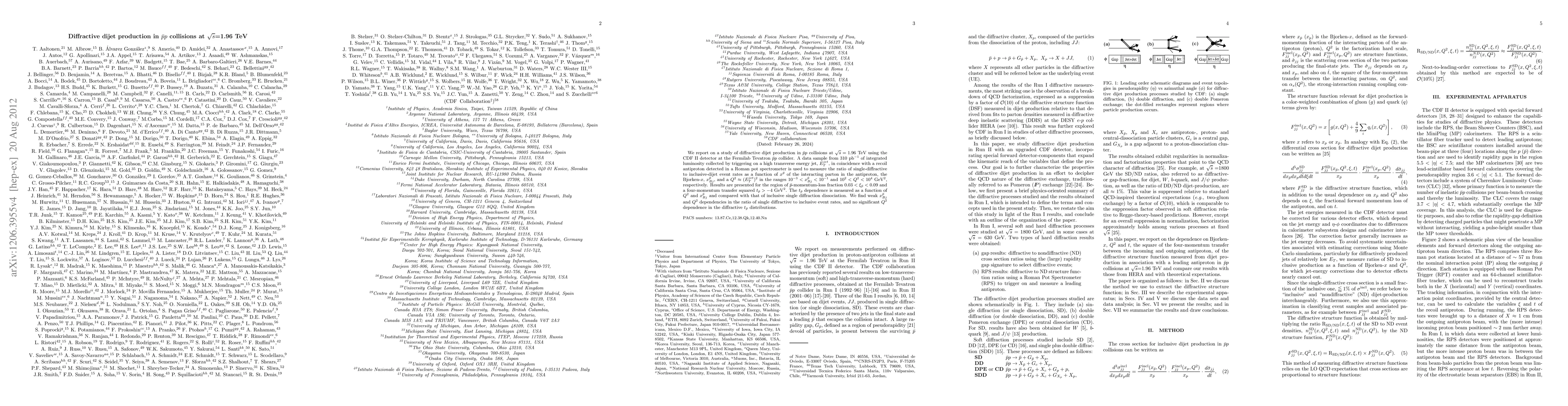 This study investigates diffractive dijet production in antiproton-proton collisions at $\sqrt{s}=1.96$ TeV using the CDF II detector, finding weak dependencies on $x^{\bar p}_{Bj}$ and $Q^2$ in the ratio of single-diffractive to inclusive-dijet events, with no significant $Q^2$ dependence in diffractive $t_{\bar p}$ distributions.