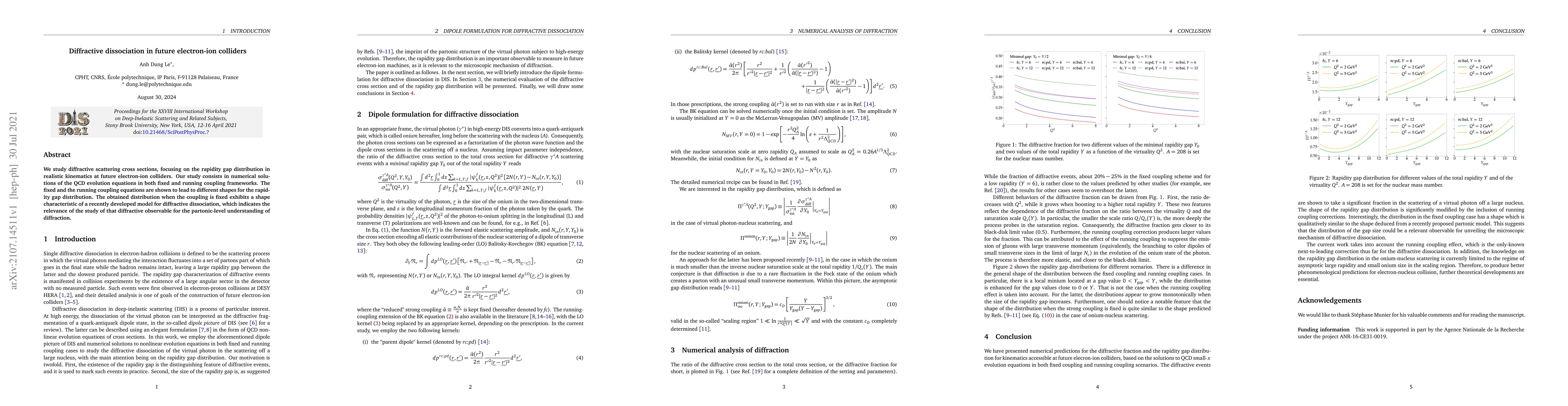 This paper investigates diffractive scattering cross sections at future electron-ion colliders, focusing on the rapidity gap distribution. It finds that fixed and running coupling frameworks yield different rapidity gap shapes, with the fixed coupling showing a distribution characteristic of a new diffractive dissociation model, highlighting its importance for understanding diffraction at the partonic level.