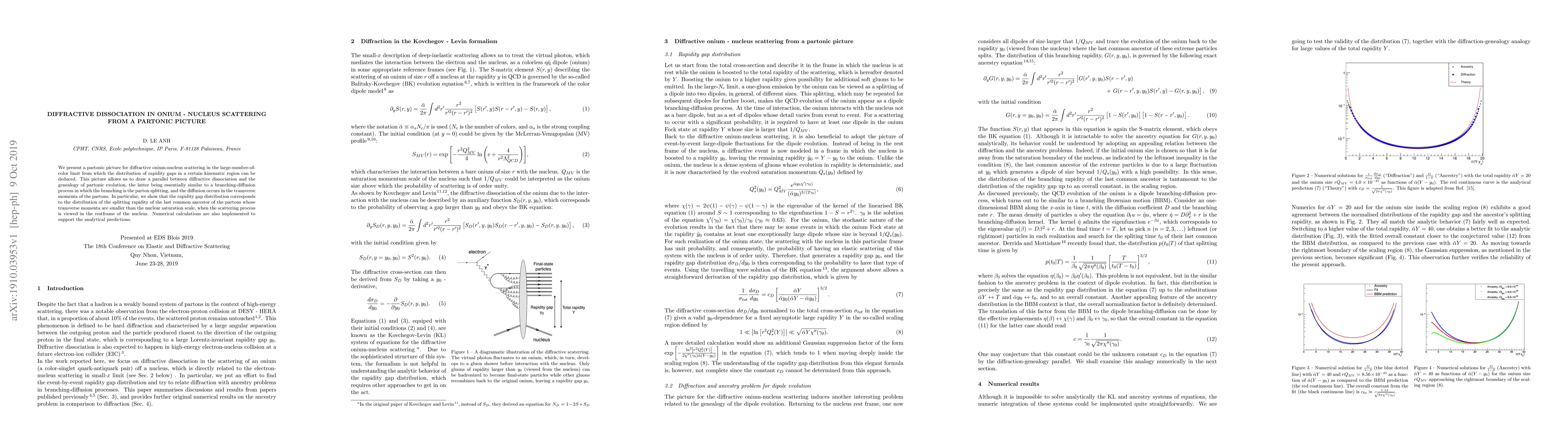 This paper presents a partonic framework for diffractive onium-nucleus scattering, linking diffractive dissociation to partonic evolution resembling a branching-diffusion process. Analytical predictions and numerical calculations show the rapidity gap distribution correlates with the splitting rapidity of the last common ancestor of partons below the nuclear saturation scale.