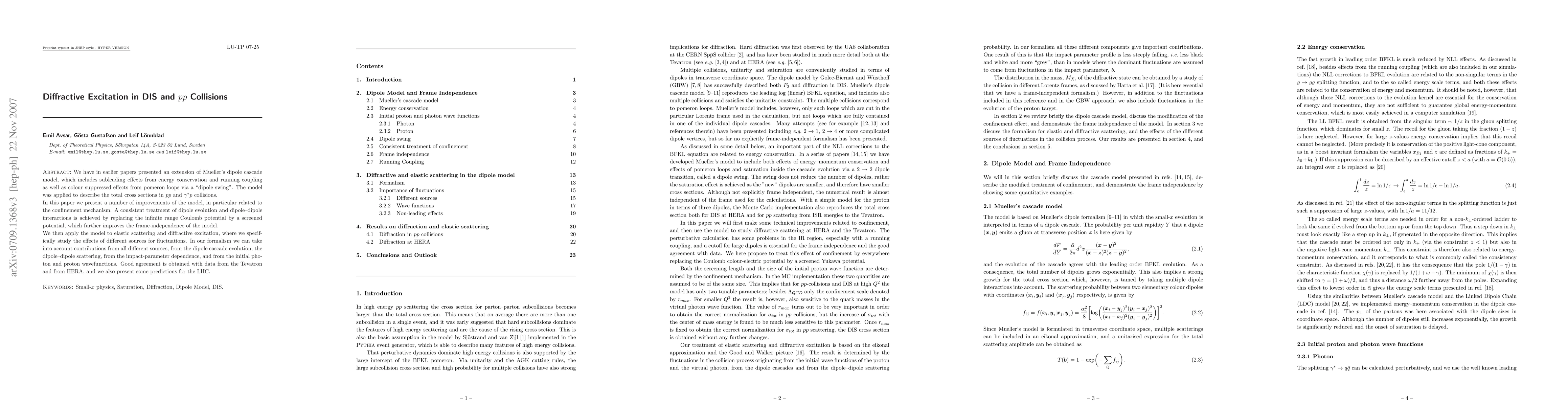 We have in earlier papers presented an extension of Mueller's dipole cascade model, which includes subleading effects from energy conservation and running coupling as well as colour suppressed effects from pomeron loops via a ``dipole swing''. The model was applied to describe the total cross sections in pp and gamma*p collisions. In this paper we present a number of improvements of the model, in particular related to the confinement mechanism. A consistent treatment of dipole evolution and dipole--dipole interactions is achieved by replacing the infinite range Coulomb potential by a screened potential, which further improves the frame-independence of the model. We then apply the model to elastic scattering and diffractive excitation, where we specifically study the effects of different sources for fluctuations. In our formalism we can take into account contributions from all different sources, from the dipole cascade evolution, the dipole--dipole scattering, from the impact-parameter dependence, and from the initial photon and proton wavefunctions. Good agreement is obtained with data from the Tevatron and from HERA, and we also present some predictions for the LHC.
