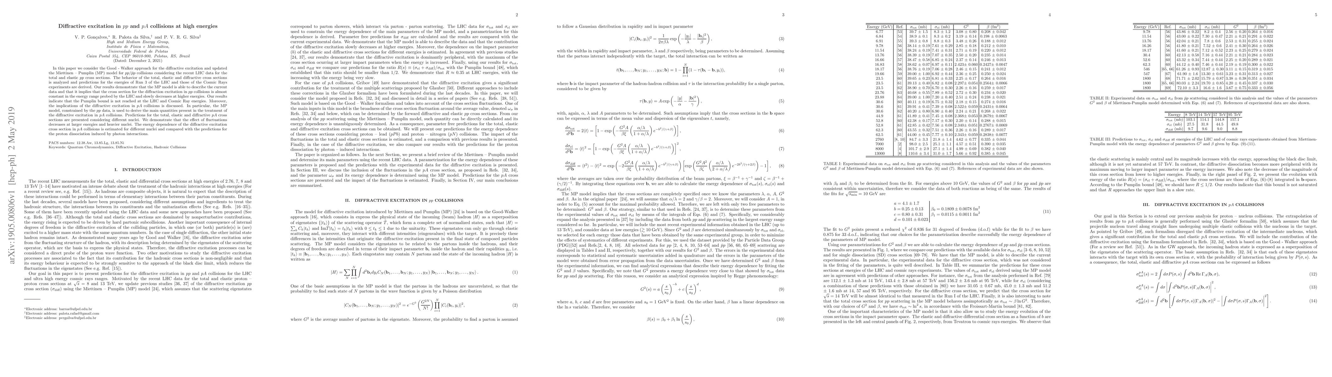 In this paper we consider the Good - Walker approach for the diffractive excitation and updated the Miettinen -- Pumplin (MP) model for $pp/\bar{p}p$ collisions considering the recent LHC data for the total and elastic $pp$ cross sections. The behavior of the total, elastic and diffractive cross sections is analyzed and predictions for the energies of Run 3 of the LHC and those of the Cosmic Rays experiments are derived. Our results demonstrate that the MP model is able to describe the current data and that it implies that the cross section for the diffraction excitation in $pp$ collisions is almost constant in the energy range probed by the LHC and slowly decreases at higher energies. Our results indicate that the Pumplin bound is not reached at the LHC and Cosmic Ray energies. Moreover, the implications of the diffractive excitation in $pA$ collisions is discussed. In particular, the MP model, constrained by the $pp$ data, is used to derive the main quantities present in the treatment of the diffractive excitation in $pA$ collisions. Predictions for the total, elastic and diffractive $pA$ cross sections are presented considering different nuclei. We demonstrate that the effect of fluctuations decreases at larger energies and heavier nuclei. The energy dependence of the diffractive excitation cross section in $pA$ collisions is estimated for different nuclei and compared with the predictions for the proton dissociation induced by photon interactions.