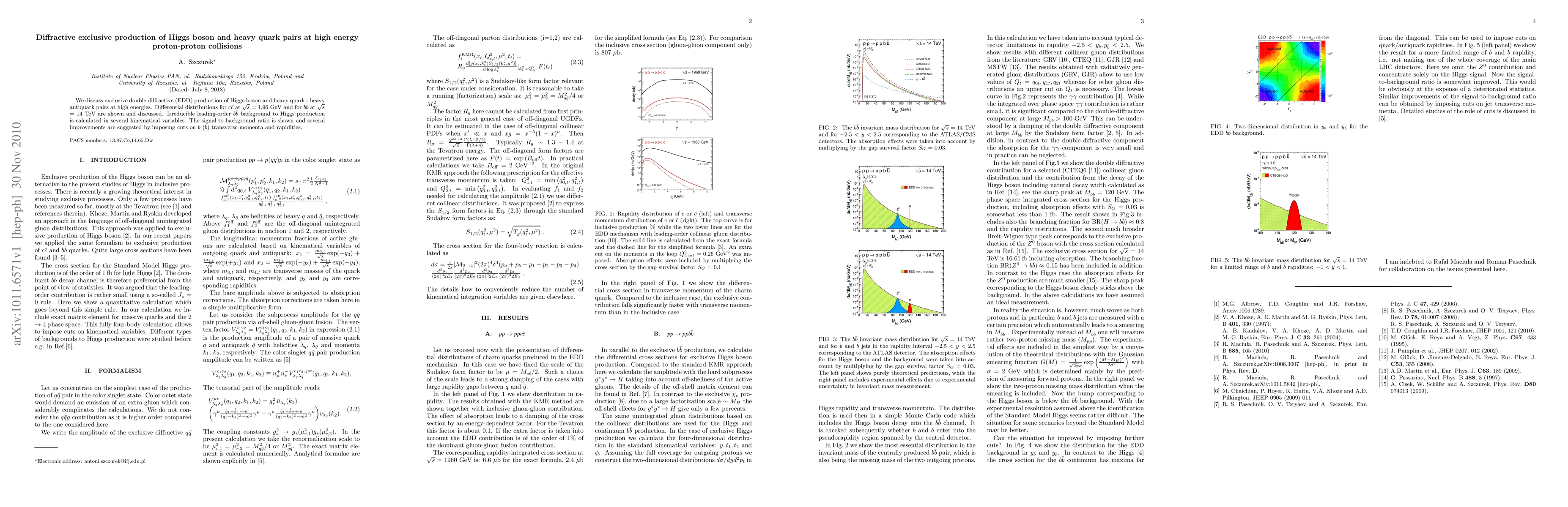 The paper introduces a detailed calculation of the EDD production of Higgs boson and heavy quark pairs using the KMR approach with off-diagonal unintegrated gluon distributions, including absorption corrections and cuts on kinematic variables.