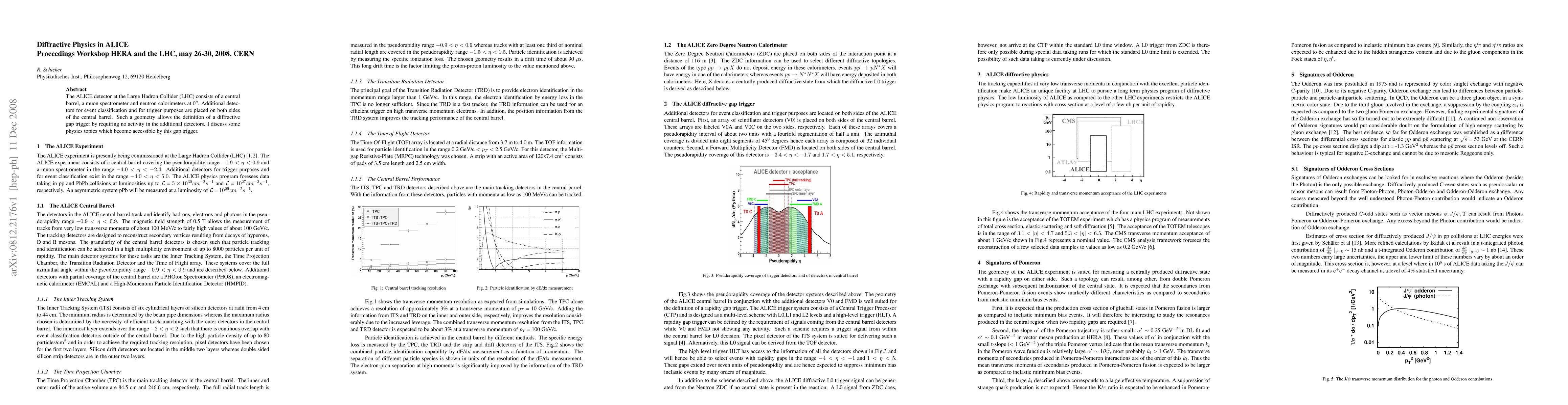 The ALICE experiment at the LHC is presented and a diffractive double gap trigger is described. Signatures of Pomeron and Odderon are discussed together with photoproduction of heavy quarks as a possible signature of gluon saturation.