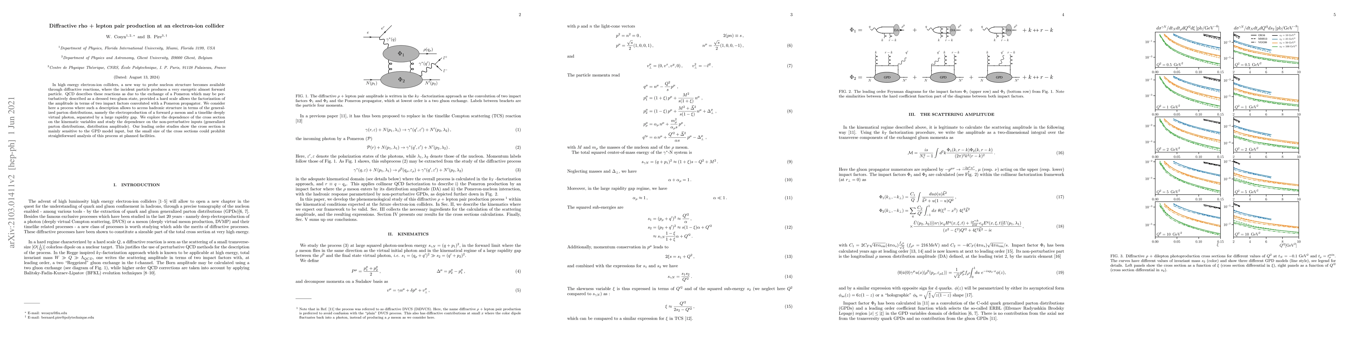This paper explores the diffractive production of a rho meson and a timelike deeply virtual photon in electron-ion collisions at high energies, using QCD to describe the Pomeron exchange. The study finds that the cross section is largely dependent on the generalized parton distribution model, though small cross sections may limit experimental analysis.