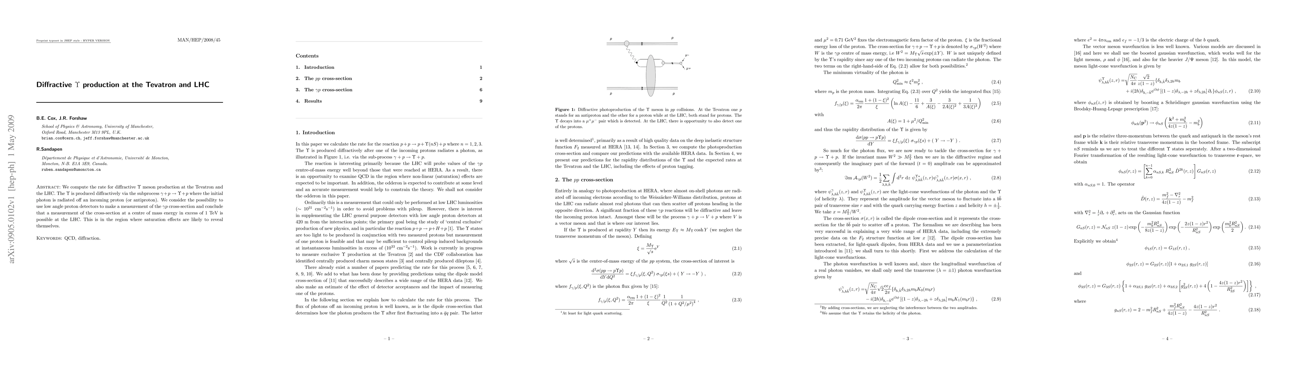 This paper calculates the rate for diffractive upsilon meson production at the LHC, focusing on the gamma + p -> upsilon + p process. It concludes that the LHC can measure the gamma p cross-section at energies above 1 TeV, where saturation effects may become significant.