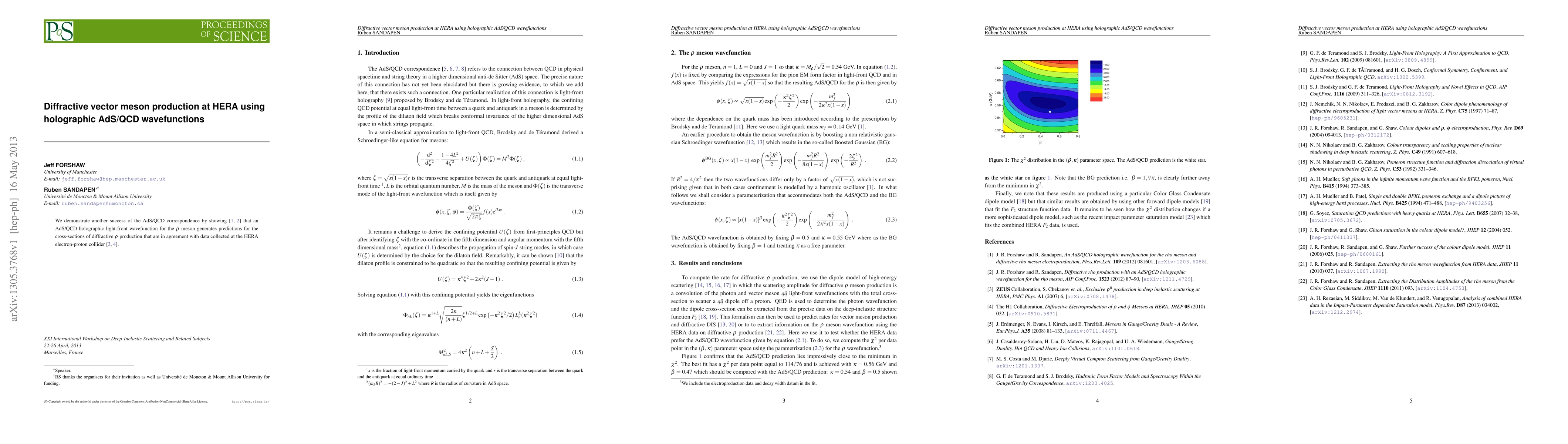 This paper demonstrates the effectiveness of the AdS/QCD correspondence by using holographic light-front wavefunctions for the $\rho$ meson to predict the cross-sections for diffractive $\rho$ production, which aligns well with HERA collider data.