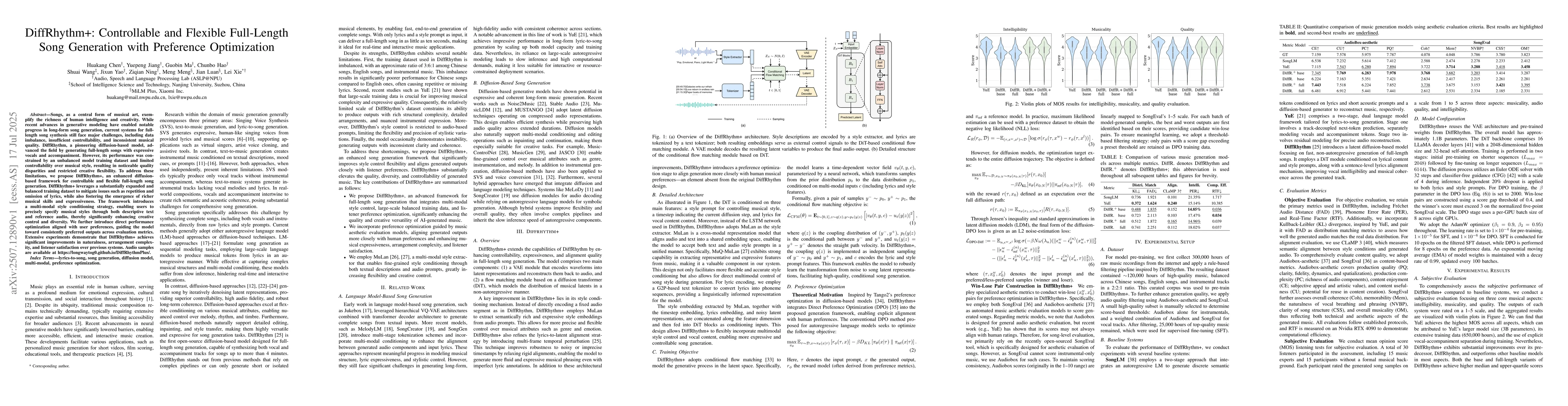Songs, as a central form of musical art, exemplify the richness of human intelligence and creativity. While recent advances in generative modeling have enabled notable progress in long-form song generation, current systems for full-length song synthesis still face major challenges, including data imbalance, insufficient controllability, and inconsistent musical quality. DiffRhythm, a pioneering diffusion-based model, advanced the field by generating full-length songs with expressive vocals and accompaniment. However, its performance was constrained by an unbalanced model training dataset and limited controllability over musical style, resulting in noticeable quality disparities and restricted creative flexibility. To address these limitations, we propose DiffRhythm+, an enhanced diffusion-based framework for controllable and flexible full-length song generation. DiffRhythm+ leverages a substantially expanded and balanced training dataset to mitigate issues such as repetition and omission of lyrics, while also fostering the emergence of richer musical skills and expressiveness. The framework introduces a multi-modal style conditioning strategy, enabling users to precisely specify musical styles through both descriptive text and reference audio, thereby significantly enhancing creative control and diversity. We further introduce direct performance optimization aligned with user preferences, guiding the model toward consistently preferred outputs across evaluation metrics. Extensive experiments demonstrate that DiffRhythm+ achieves significant improvements in naturalness, arrangement complexity, and listener satisfaction over previous systems.
