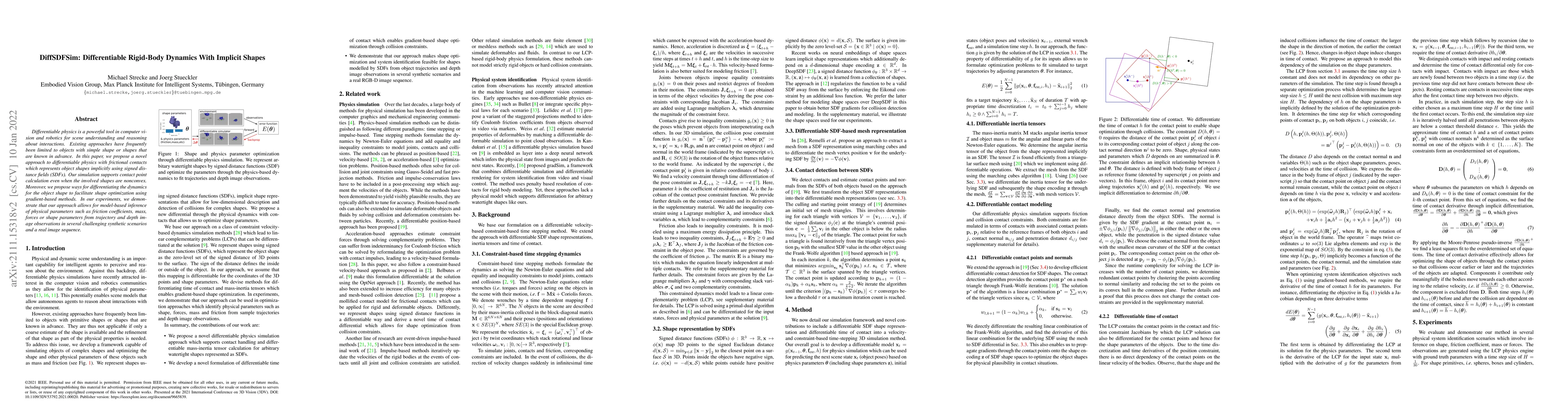 Researchers developed a new approach to differentiable physics with implicit shapes using signed distance fields (SDFs), enabling simulation of complex shapes and frictional contacts. Their method allows for inference of physical parameters from observations in synthetic and real-world scenarios.