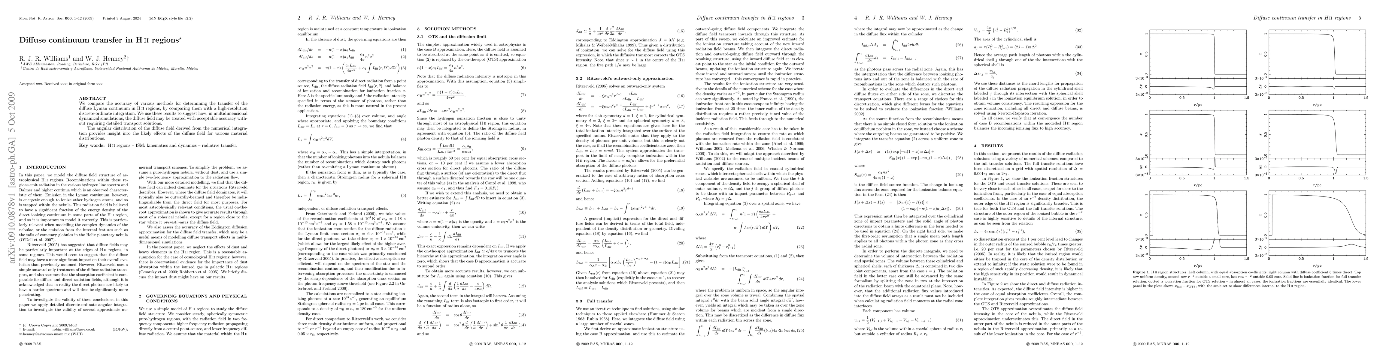 We compare the accuracy of various methods for determining the transfer of the diffuse Lyman continuum in HII regions, by comparing them with a high-resolution discrete-ordinate integration. We use these results to suggest how, in multidimensional dynamical simulations, the diffuse field may be treated with acceptable accuracy without requiring detailed transport solutions. The angular distribution of the diffuse field derived from the numerical integration provides insight into the likely effects of the diffuse field for various material distributions.