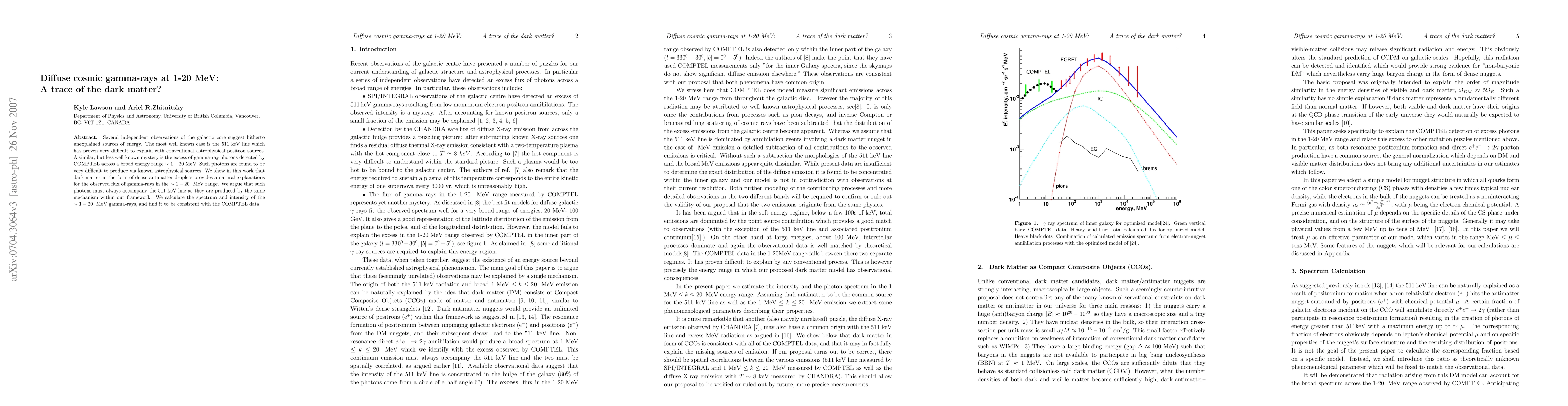 Several independent observations of the galactic core suggest hitherto unexplained sources of energy. The most well known case is the 511 keV line which has proven very difficult to explain with conventional astrophysical positron sources. A similar, but less well known mystery is the excess of gamma-ray photons detected by COMPTEL across a broad energy range 1-20 MeV. Such photons are found to be very difficult to produce via known astrophysical sources. We show in this work that dark matter in the form of dense antimatter droplets provides a natural explanations for the observed flux of gamma-rays in the 1-20 MeV range. We argue thatsuch photons must always accompany the 511 keV line as they produced by the same mechanism within our framework. We calculate the spectrum and intensity of the 1-20 MeV gamma-rays, and find it to be consistent with the COMPTEL data.