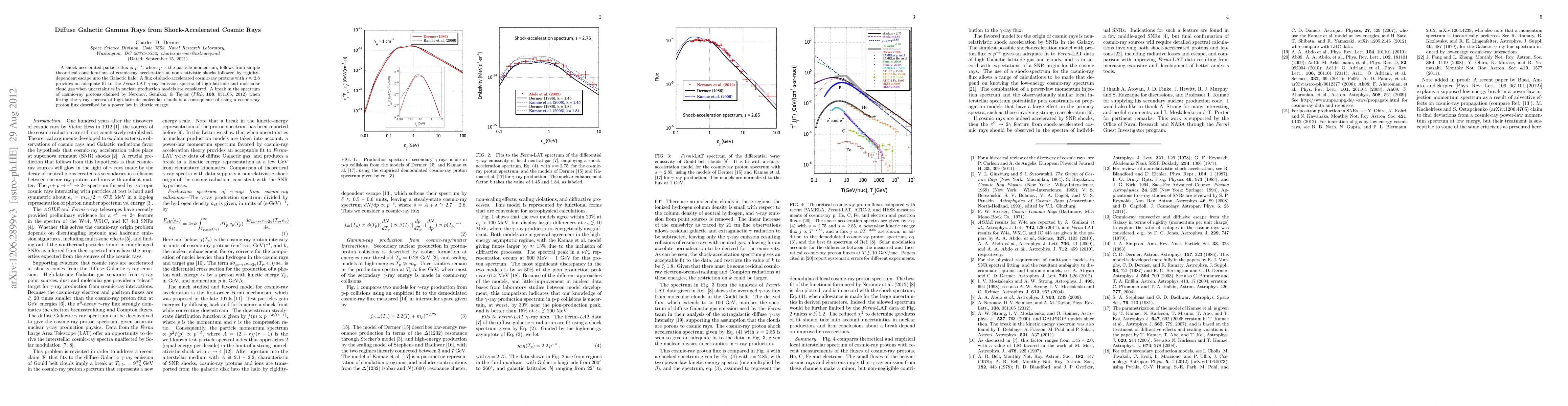 This paper investigates the origin of diffuse galactic gamma rays, attributing them to shock-accelerated cosmic rays. It finds that a cosmic-ray proton flux with an index of ~2.8 fits the Fermi-LAT gamma-ray spectra well, refuting the claimed spectral break by Neronov et al. due to energy-based rather than momentum-based modeling.