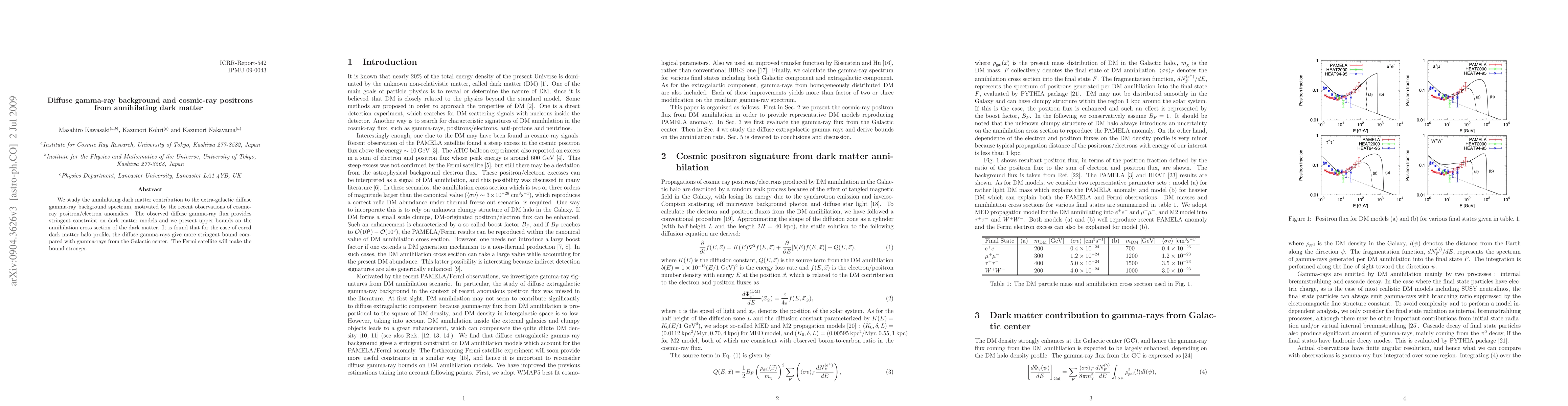 This paper investigates the contribution of dark matter annihilation to the extra-galactic diffuse gamma-ray background, linking it to recent cosmic-ray positron anomalies. The study finds that gamma-ray observations impose stringent constraints on dark matter models, particularly favoring cored dark matter halo profiles and suggesting that future Fermi satellite data will further strengthen these constraints.