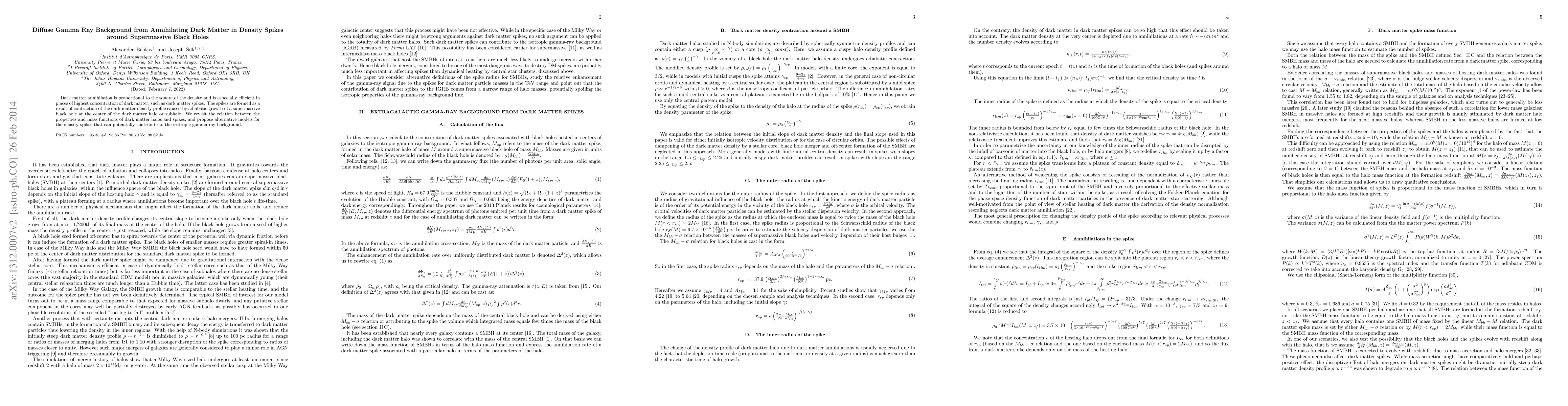 This paper explores the dark matter annihilation in density spikes around supermassive black holes, proposing that these spikes, formed by the contraction of dark matter density profiles, could contribute significantly to the diffuse gamma-ray background. It examines the mass functions of dark matter halos and spikes, and suggests alternative models for these spikes.