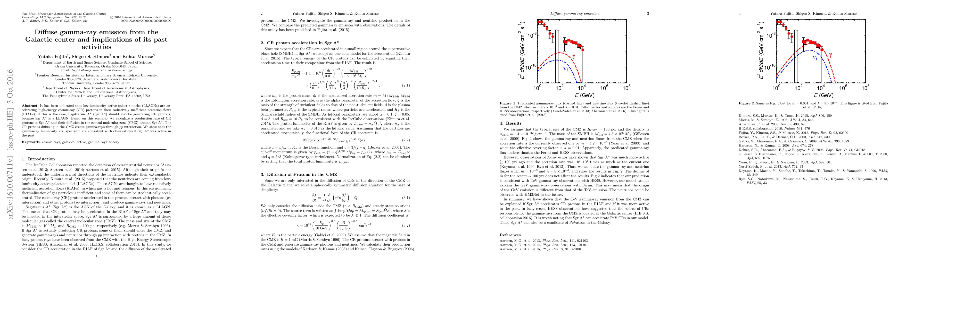 This paper investigates the diffuse gamma-ray emission from the Galactic center, suggesting that Sagittarius A* (Sgr A*), a low-luminosity active galactic nucleus, accelerates high-energy cosmic-ray protons. The study finds that the observed gamma-ray luminosity and spectrum align with historical activity of Sgr A*.