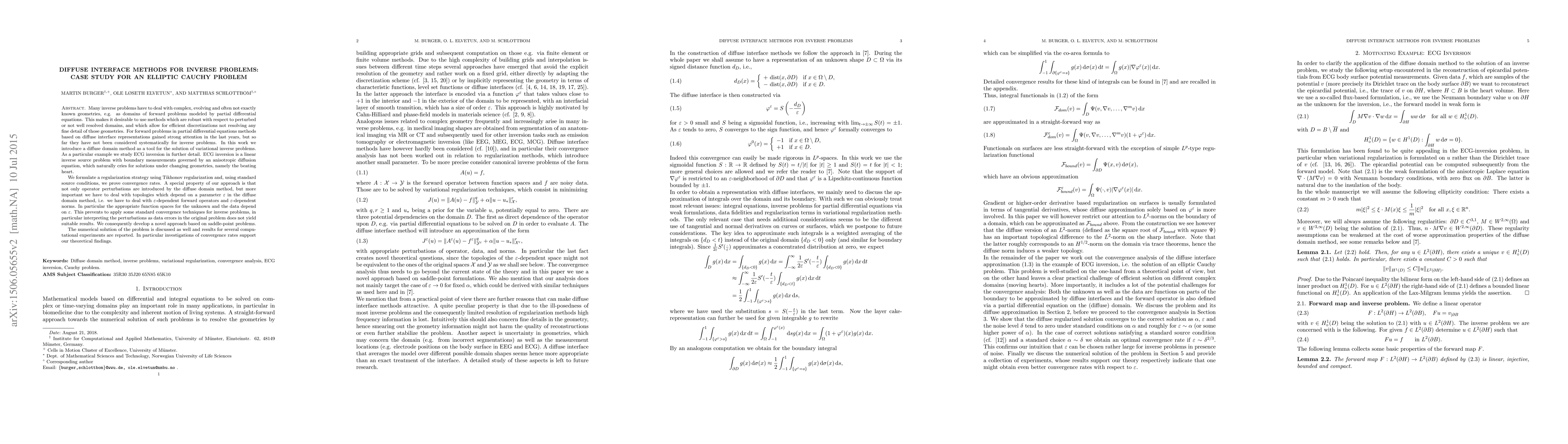 This paper introduces a diffuse domain method for solving variational inverse problems, with a focus on ECG inversion as a case study. The method uses Tikhonov regularization and proves convergence rates, addressing challenges posed by $eps$-dependent forward operators and norms, and developing a novel approach based on saddle-point problems.