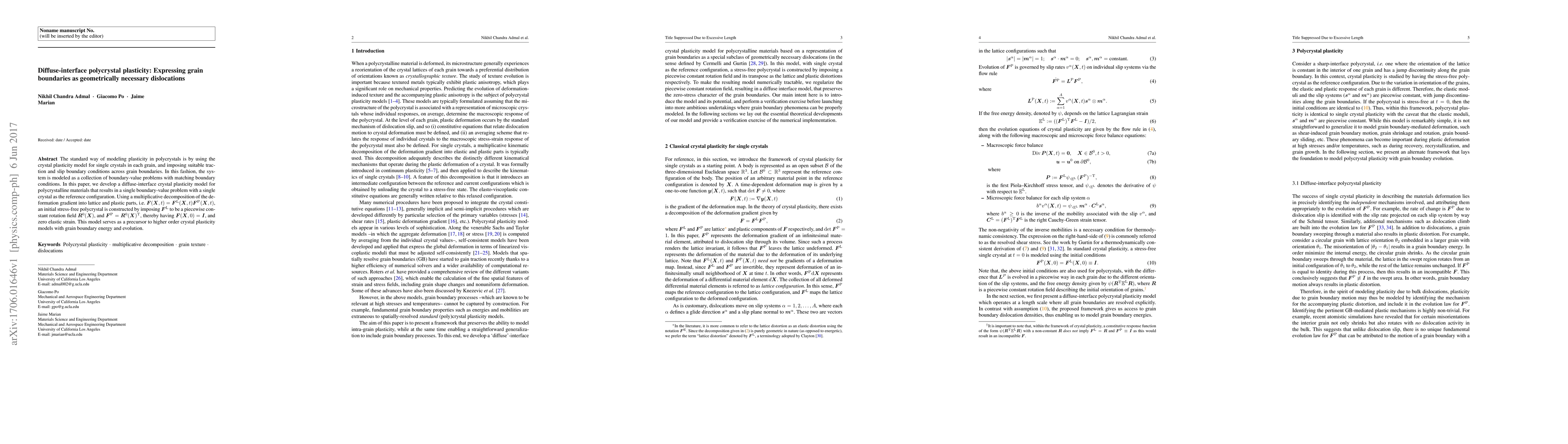 This paper introduces a diffuse-interface crystal plasticity model for polycrystalline materials, presenting a unified boundary-value problem by expressing grain boundaries as geometrically necessary dislocations. The model uses a multiplicative decomposition of the deformation gradient to construct an initial stress-free polycrystal, paving the way for advanced plasticity models incorporating grain boundary energy and evolution.
