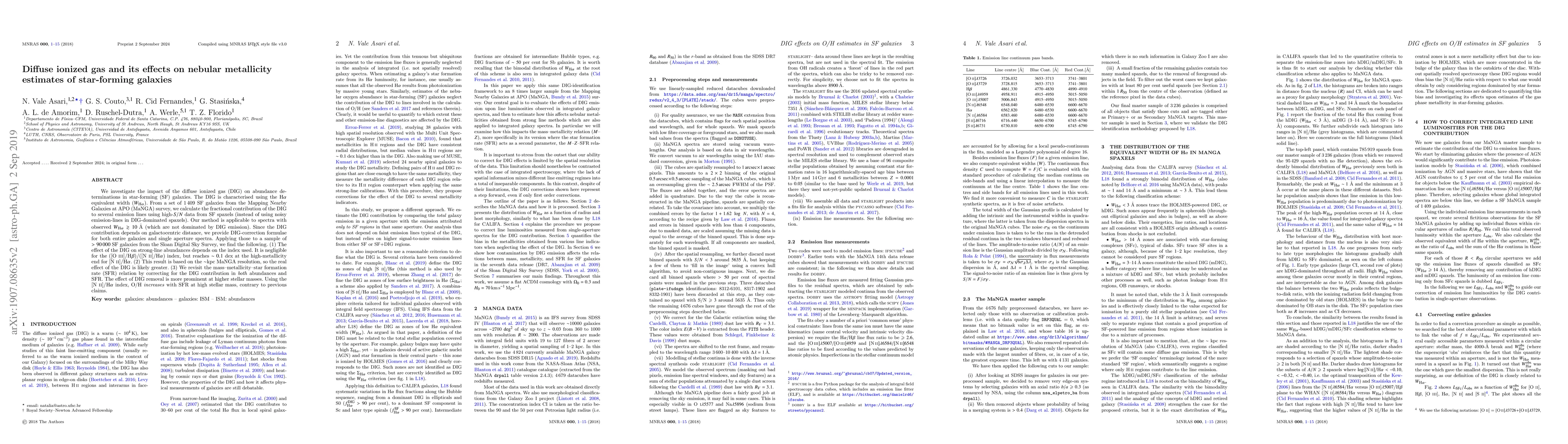 This paper examines the influence of diffuse ionized gas (DIG) on metallicity estimates in star-forming galaxies, finding that DIG corrections are necessary for accurate abundance determinations. The study reveals that the DIG's effect on metallicity varies with the chosen index and is more significant at higher stellar masses.