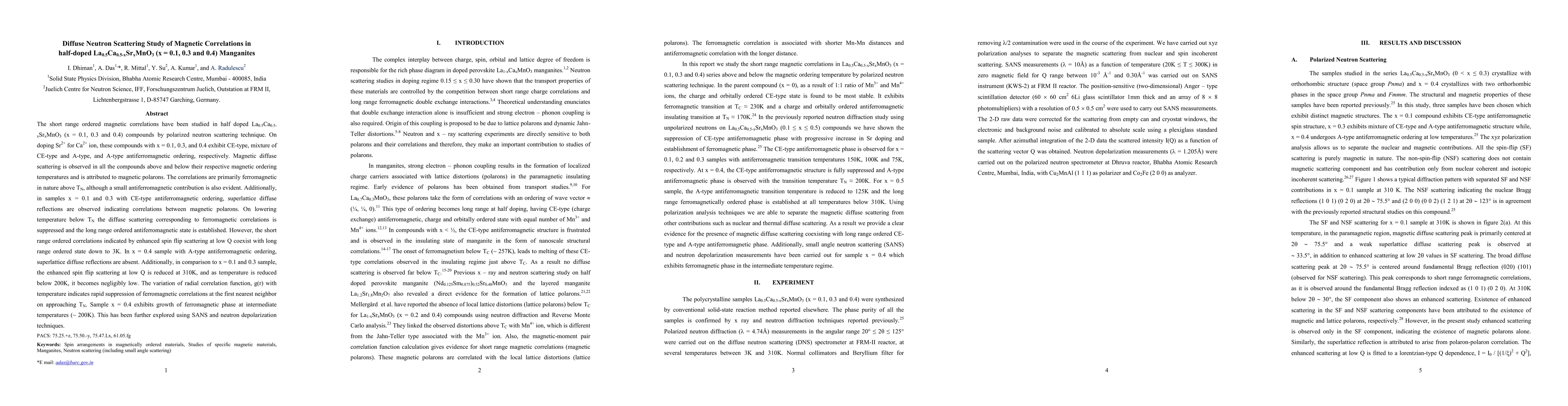 Researchers studied magnetic correlations in half-doped La0.5Ca0.5-xSrxMnO3 compounds using neutron scattering technique, finding ferromagnetic correlations above the ordering temperature and suppressed below it.