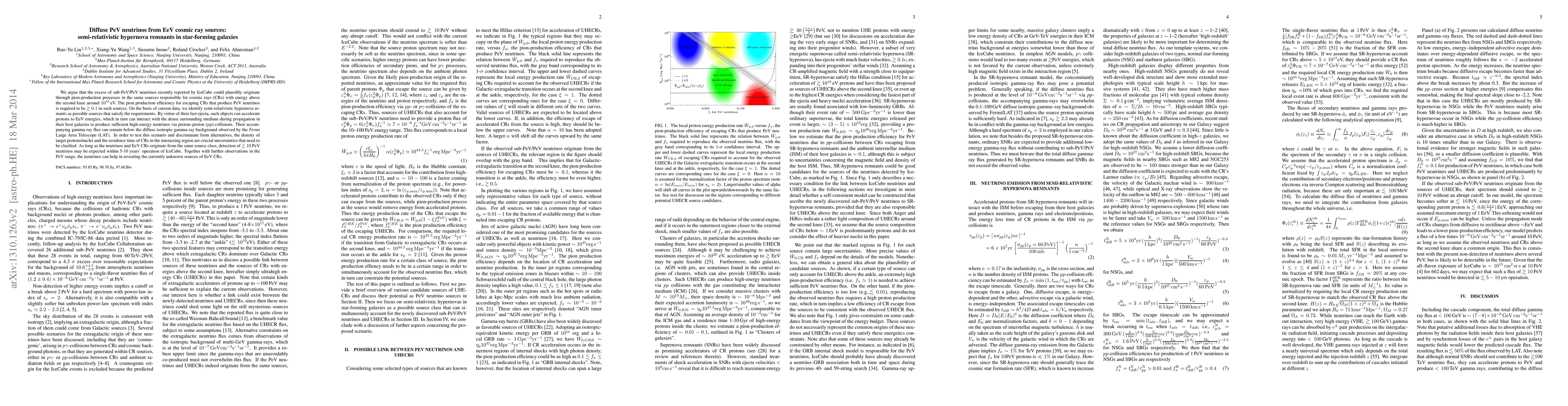 This paper proposes that semi-relativistic hypernova remnants in star-forming galaxies could be the sources of both diffuse PeV neutrinos and EeV cosmic rays, driven by proton acceleration and interactions. The detection of higher energy neutrinos by IceCube could confirm this scenario.