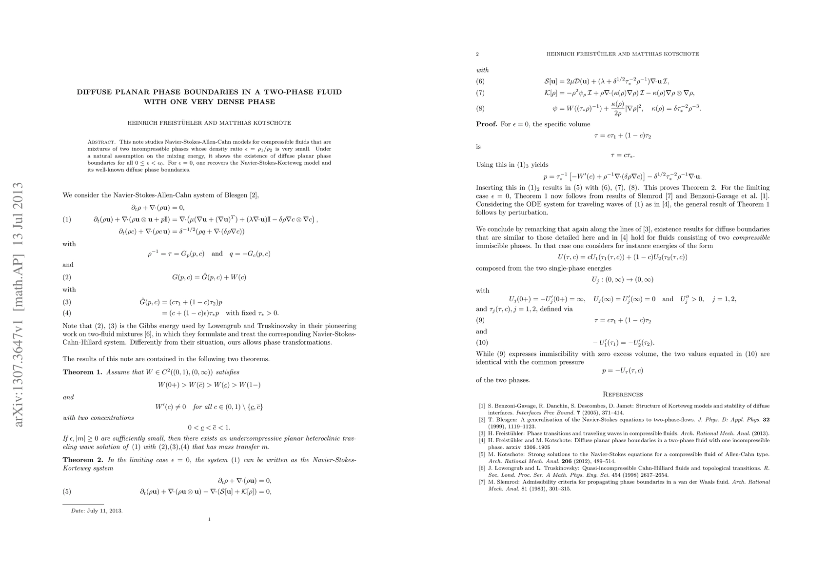 The research proves the existence of diffuse planar phase boundaries using two theorems and recovers the Navier-Stokes-Korteweg model as a limiting case.