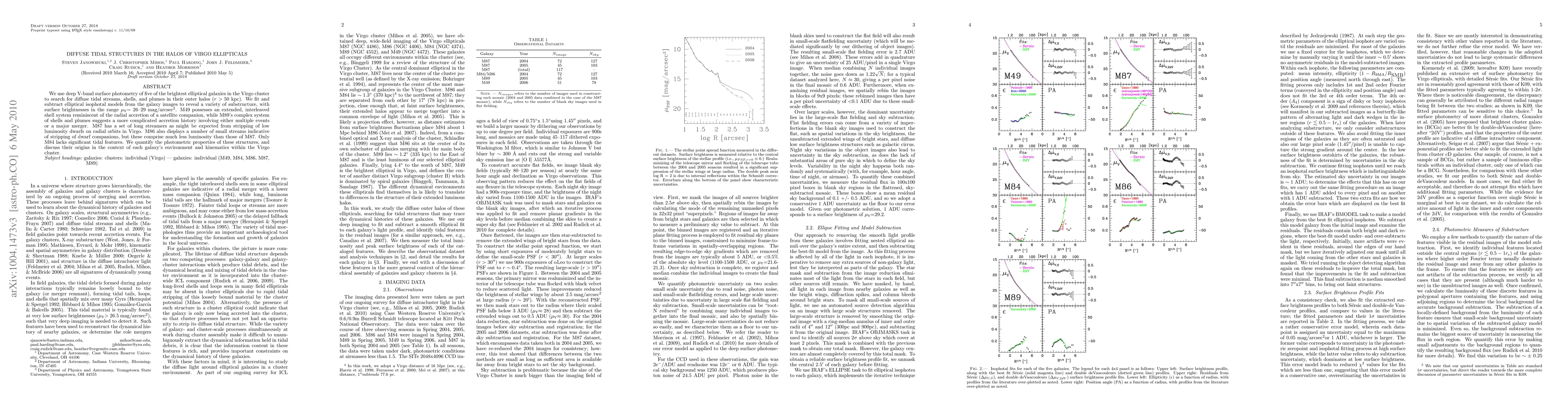 We use deep V-band surface photometry of five of the brightest elliptical galaxies in the Virgo cluster to search for diffuse tidal streams, shells, and plumes in their outer halos (r > 50 kpc). We fit and subtract elliptical isophotal models from the galaxy images to reveal a variety of substructure, with surface brightnesses in the range mu_V= 26-29 mag/arcsec^2. M49 possesses an extended, interleaved shell system reminiscent of the radial accretion of a satellite companion, while M89's complex system of shells and plumes suggests a more complicated accretion history involving either multiple events or a major merger. M87 has a set of long streamers as might be expected from stripping of low luminosity dwarfs on radial orbits in Virgo. M86 also displays a number of small streams indicative of stripping of dwarf companions, but these comprise much less luminosity than those of M87. Only M84 lacks significant tidal features. We quantify the photometric properties of these structures, and discuss their origins in the context of each galaxy's environment and kinematics within the Virgo cluster.