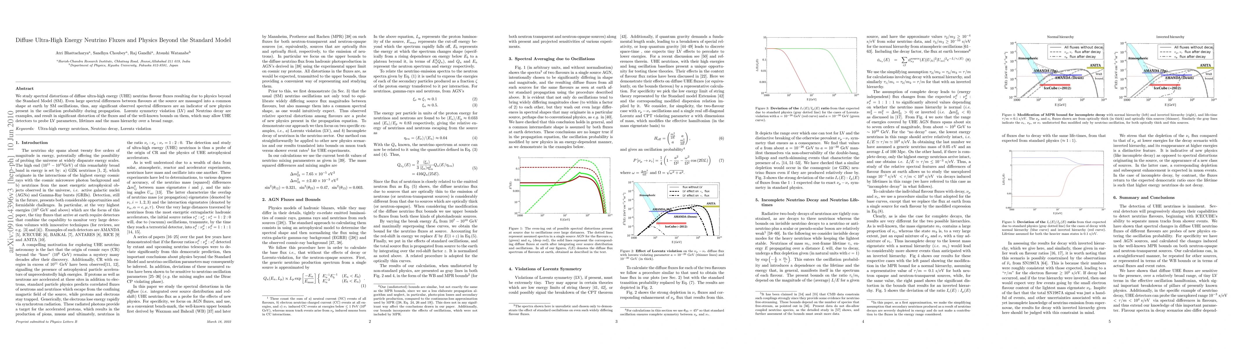 This paper investigates how spectral distortions in ultra-high energy neutrino fluxes can reveal physics beyond the Standard Model, suggesting that deviations from the expected shape due to neutrino decay or Lorentz symmetry violation could indicate new physics, potentially enabling UHE detectors to explore neutrino lifetimes and mass hierarchy.