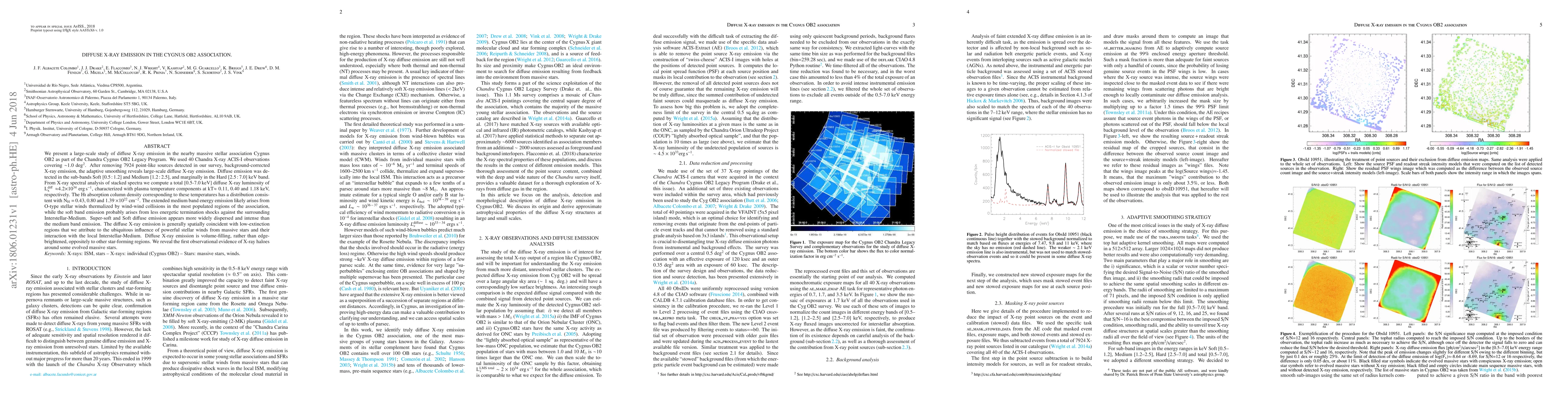 The study utilized 40 Chandra X-ray ACIS-I observations covering ~1.0 deg^2 to analyze diffuse X-ray emission in the Cygnus OB2 association. Point-like sources were removed, and adaptive smoothing revealed large-scale diffuse emission in soft, medium, and marginally in hard X-ray bands.