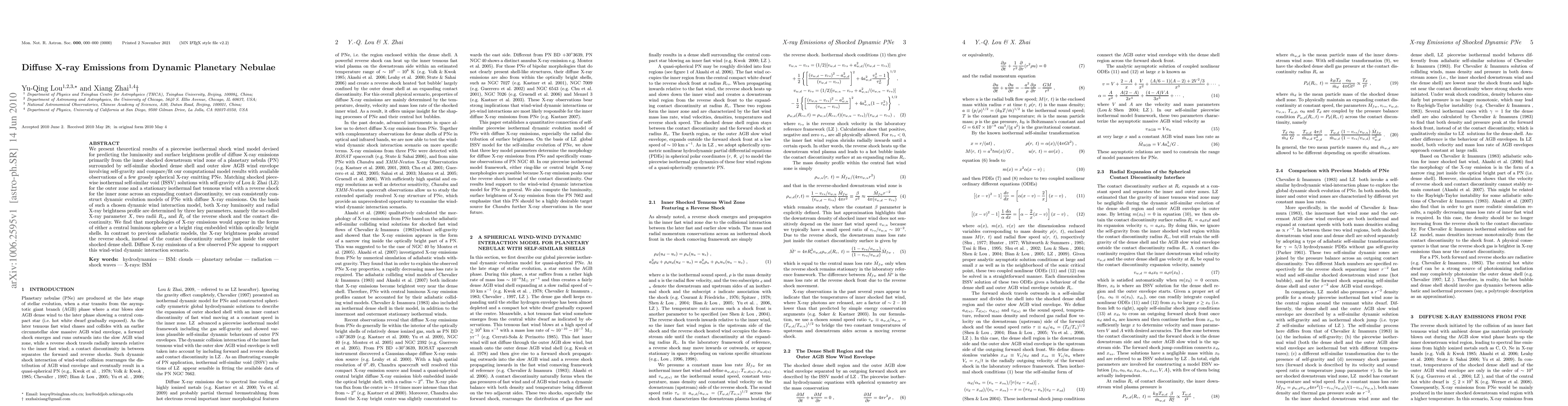Development of a piecewise isothermal shock wind model for predicting diffuse X-ray emissions from dynamic PNe, incorporating self-gravity and comparing with observations.