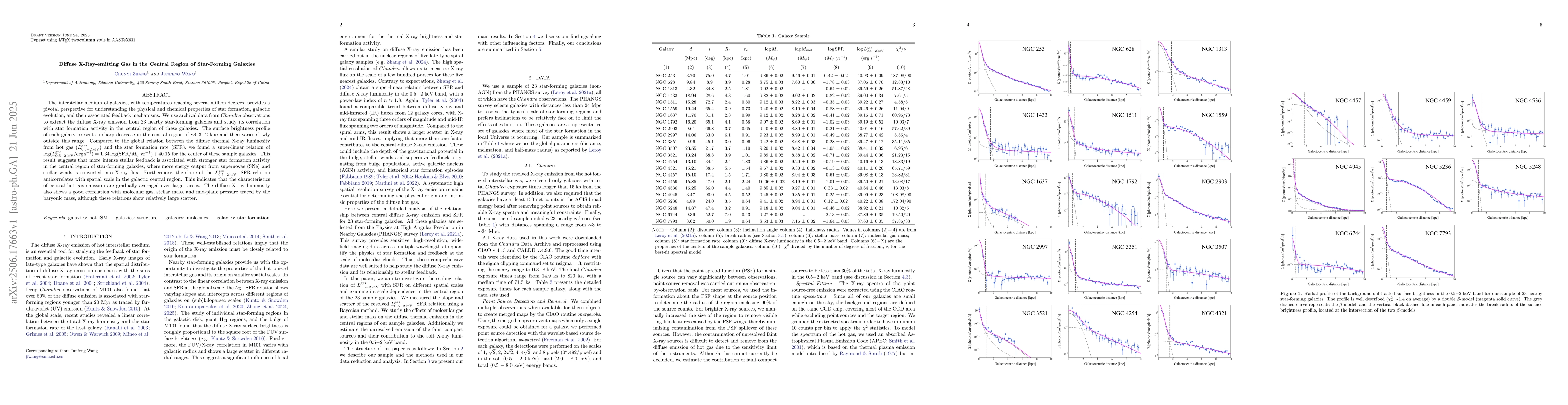 The interstellar medium of galaxies, with temperatures reaching several million degrees, provides a pivotal perspective for understanding the physical and chemical properties of star formation, galactic evolution, and their associated feedback mechanisms. We use archival data from $Chandra$ observations to extract the diffuse X-ray emission from 23 nearby star-forming galaxies and study its correlation with star formation activity in the central region of these galaxies. The surface brightness profile of each galaxy presents a sharp decrease in the central region of $\thicksim$0.3$-$2 kpc and then varies slowly outside this range. Compared to the global relation between the diffuse thermal X-ray luminosity from hot gas ($L_{\rm 0.5 - 2\,keV}^{\rm gas}$) and the star formation rate (SFR), we found a super-linear relation of ${\rm log}(L_{\rm 0.5-2\,keV}^{\rm gas} /{\rm erg\,s^{-1}})=1.34\,{\rm log}({\rm SFR}/{M_{\rm \odot}}\,{\rm yr^{-1}})+40.15$ for the center of these sample galaxies. This result suggests that more intense stellar feedback is associated with stronger star formation activity in the central region of star-forming galaxies, where more energy output from supernovae (SNe) and stellar winds is converted into X-ray flux. Furthermore, the slope of the $L_{\rm 0.5 - 2\,keV}^{\rm gas}$$-$SFR relation anticorrelates with spatial scale in the galactic central region. This indicates that the characteristics of central hot gas emission are gradually averaged over larger areas. The diffuse X-ray luminosity also shows a good correlation with molecular gas, stellar mass, and mid-plane pressure traced by the baryonic mass, although these relations show relatively large scatter.