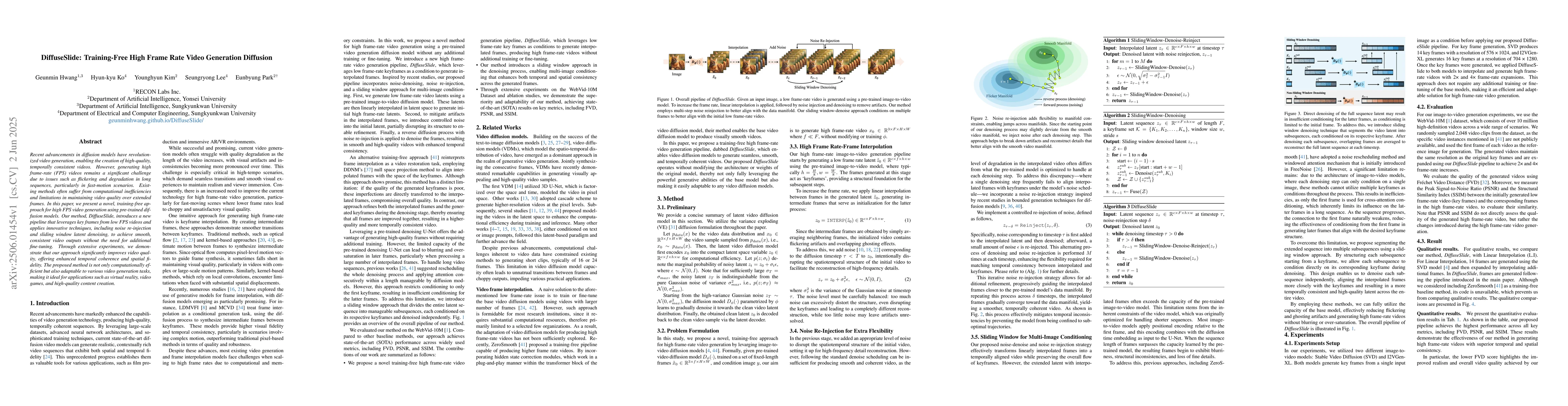 Researchers developed a new method called DiffuseSlide that generates high frame rate videos without training, using pre-trained diffusion models and techniques like noise re-injection to improve video quality.
