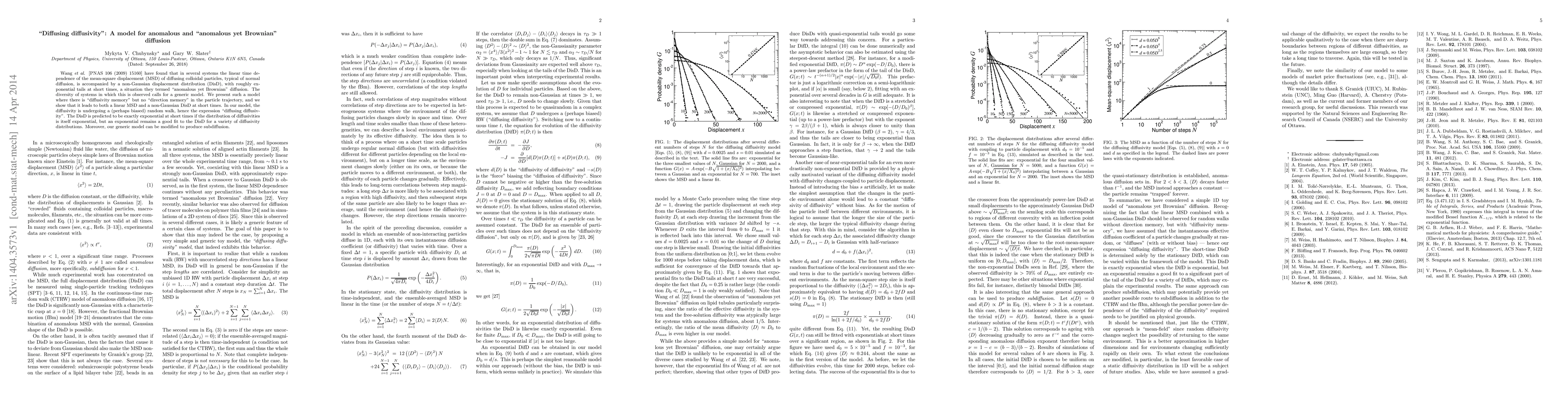 Wang et al. propose a "diffusing diffusivity" model to explain "anomalous yet Brownian" diffusion, where diffusivity undergoes a random walk, leading to a linear mean-square displacement and an exponential tail in the non-Gaussian displacement distribution at short times. The model can be adapted to produce subdiffusion.