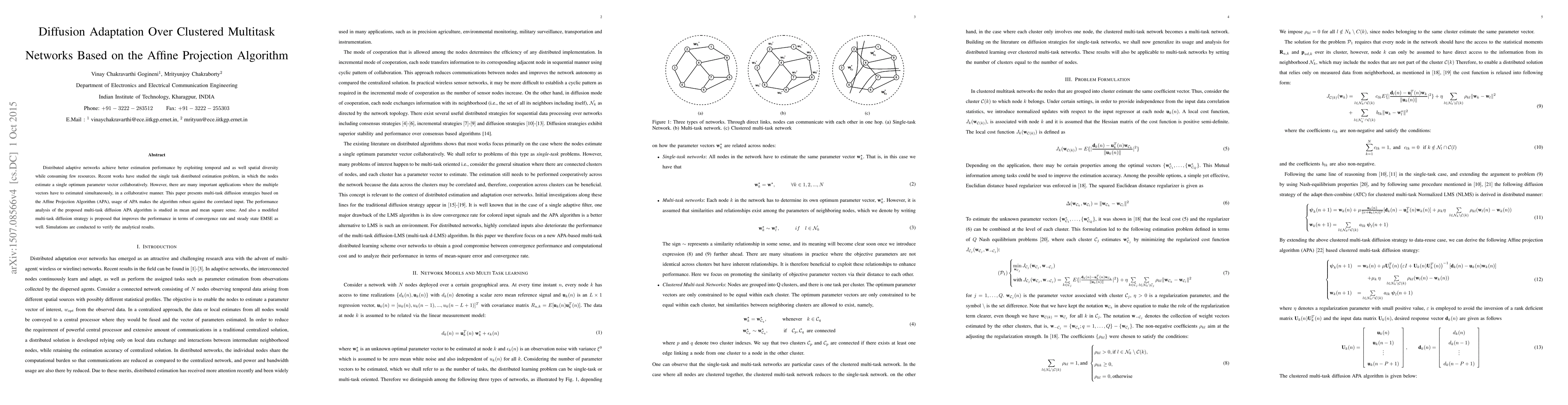 This paper proposes multi-task diffusion strategies based on the Affine Projection Algorithm (APA) to collaboratively estimate multiple vectors, enhancing performance through temporal and spatial diversity. A modified diffusion strategy is introduced to improve convergence rate and steady-state EMSE, validated through simulations.