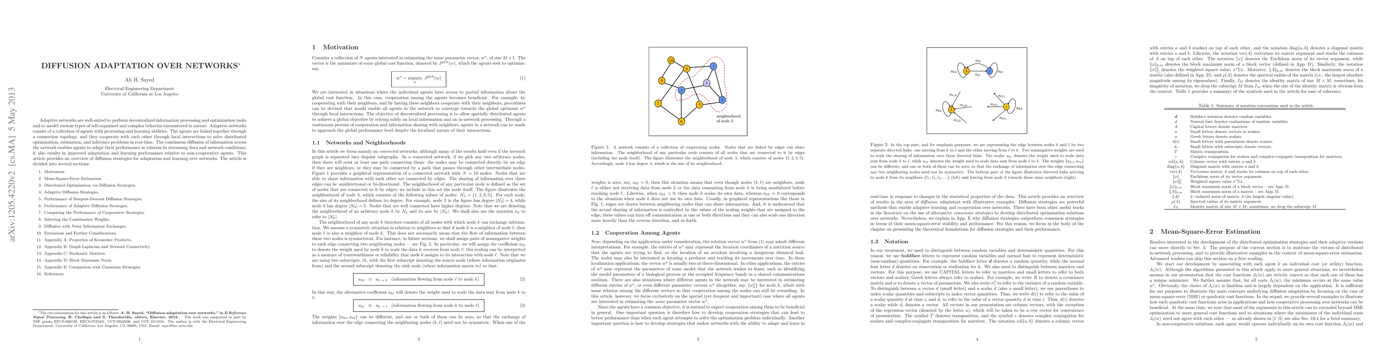 The paper presents a comprehensive overview of diffusion strategies for adaptation and learning over networks, including detailed derivations of error recursions, performance measures, and stability conditions for adaptive diffusion strategies.