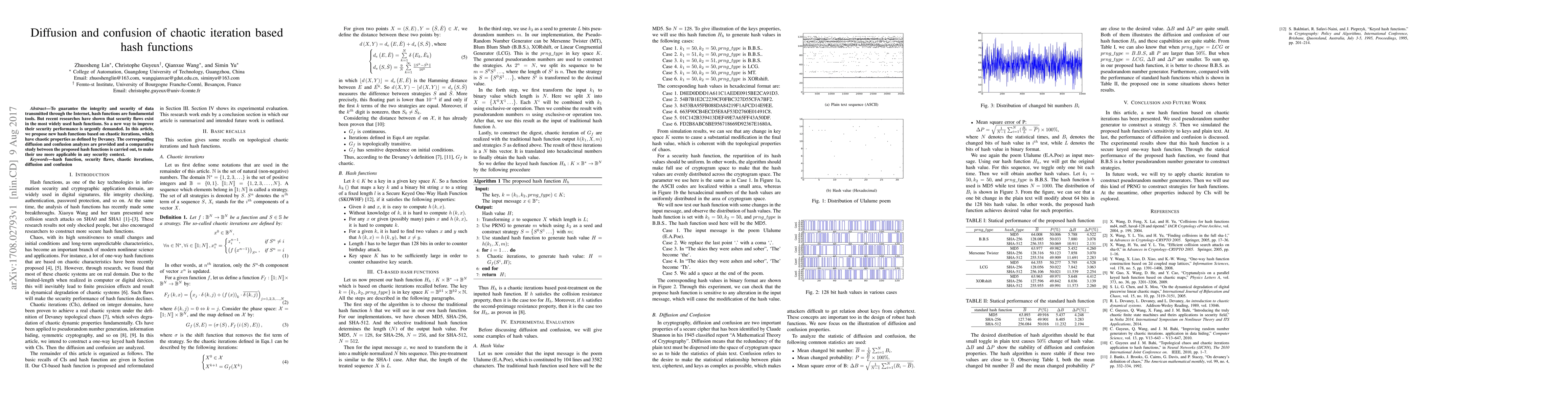 This paper proposes new hash functions based on chaotic iterations to enhance data security over the Internet. It includes diffusion and confusion analyses and a comparative study to evaluate their effectiveness in various security contexts.