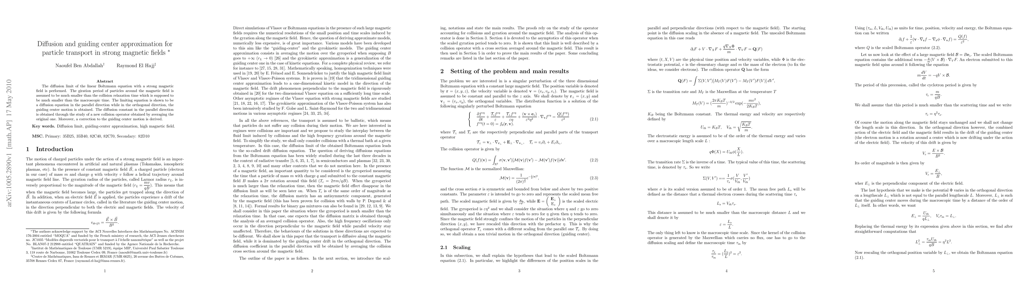 This paper investigates the diffusion limit of the linear Boltzmann equation under strong magnetic fields, deriving a diffusion equation in the parallel direction and guiding center motion in the orthogonal direction. A new collision operator is introduced to determine the diffusion constant, along with a correction term for the guiding center motion.