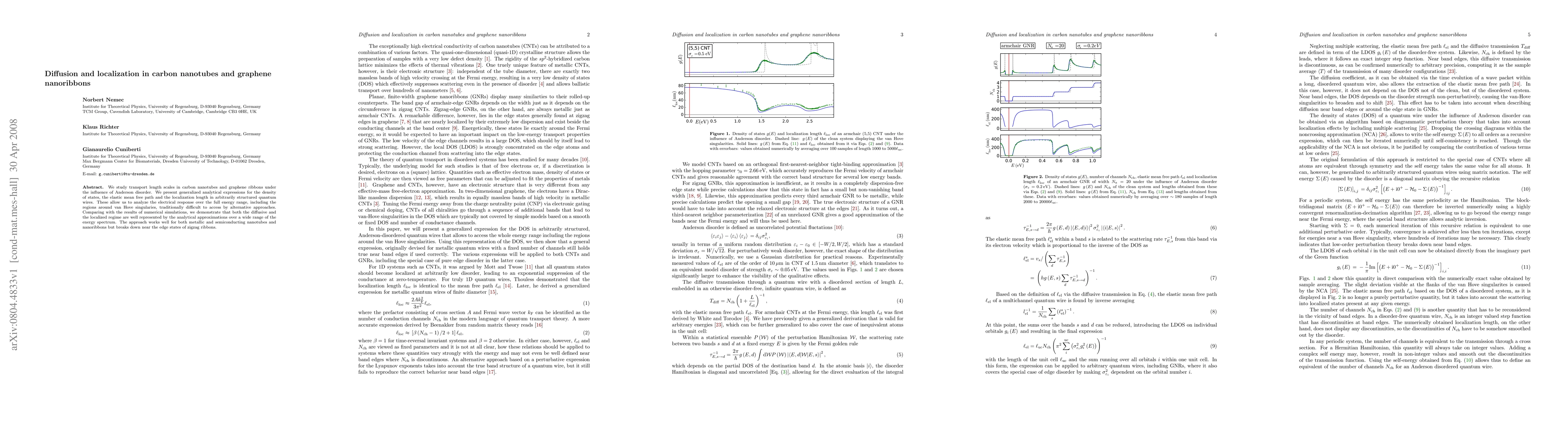 This paper develops generalized analytical expressions for transport properties in carbon nanotubes and graphene nanoribbons under Anderson disorder, showing good agreement with numerical simulations across various energy regimes, except near zigzag ribbon edge states. The approach effectively captures both diffusive and localized regimes.