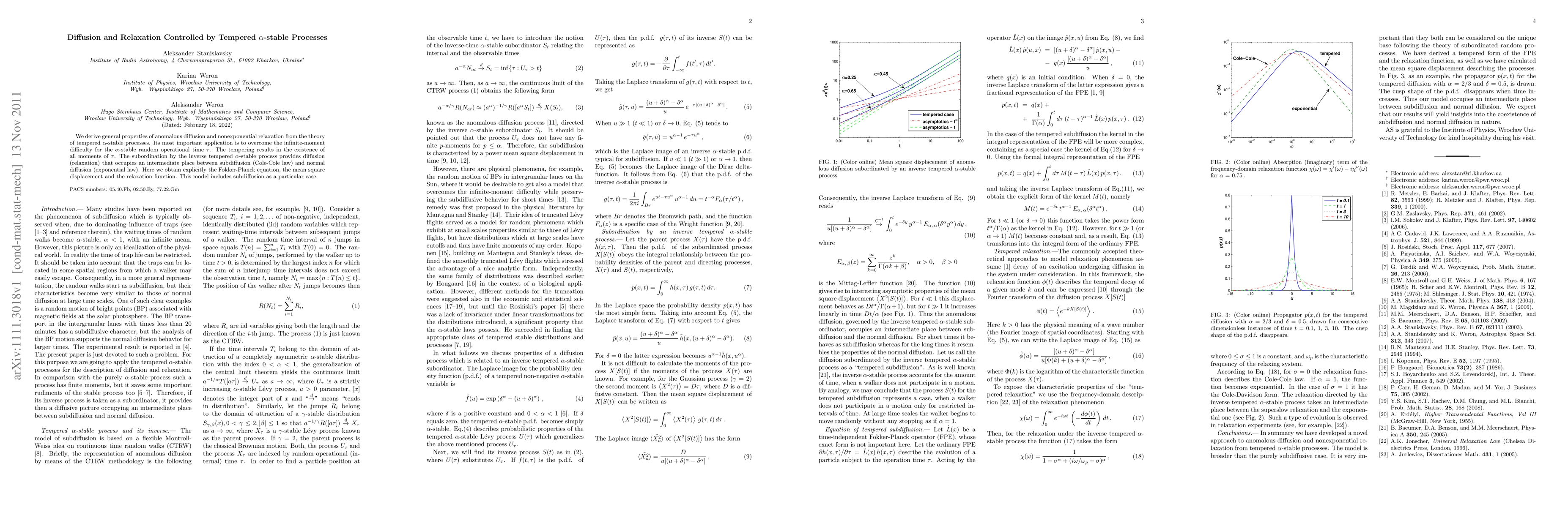 We derive general properties of anomalous diffusion and nonexponential relaxation from the theory of tempered \alpha-stable processes. Its most important application is to overcome the infinite-moment difficulty for the \alpha-stable random operational time \tau. The tempering results in the existence of all moments of \tau. The subordination by the inverse tempered \alpha-stable process provides diffusion(relaxation) that occupies an intermediate place between subdiffusion (Cole-Cole law) and normal diffusion (exponential law). Here we obtain explicitly the Fokker-Planck equation, the mean square displacement and the relaxation function. This model includes subdiffusion as a particular case.