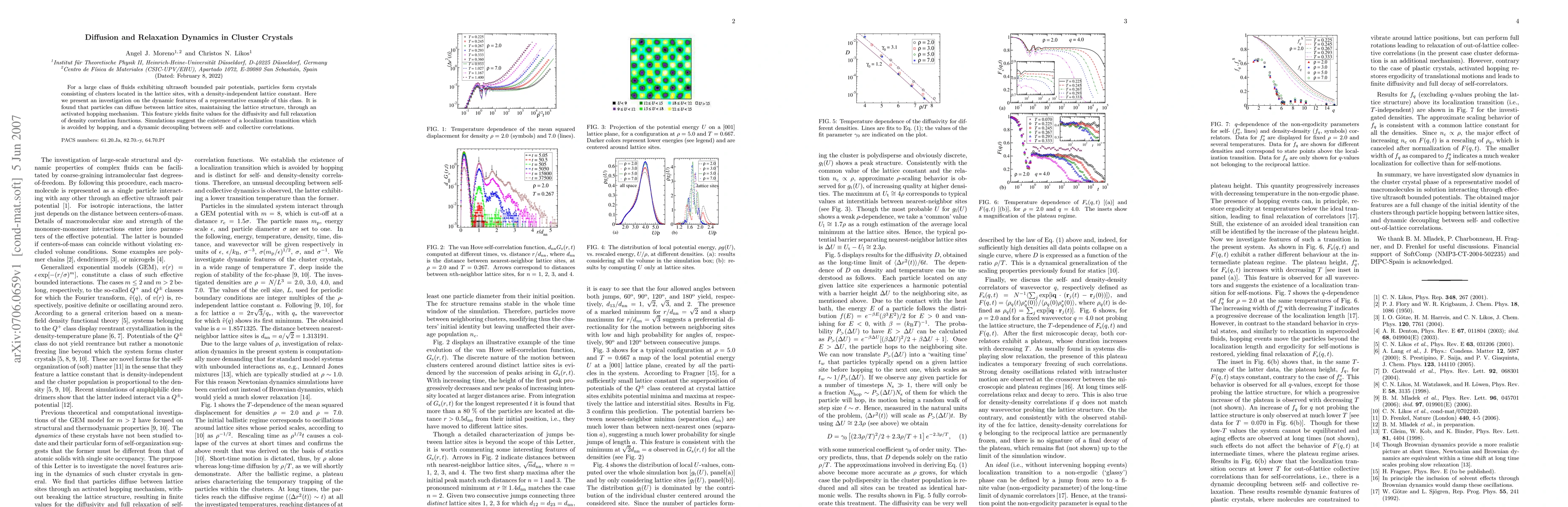 This paper investigates the dynamic behavior of cluster crystals with ultrasoft bounded pair potentials, revealing that particles can diffuse through an activated hopping mechanism while preserving the lattice structure, leading to finite diffusivity and full relaxation of density correlations. Simulations suggest a localization transition is avoided by hopping, and a decoupling between self- and collective correlations occurs.