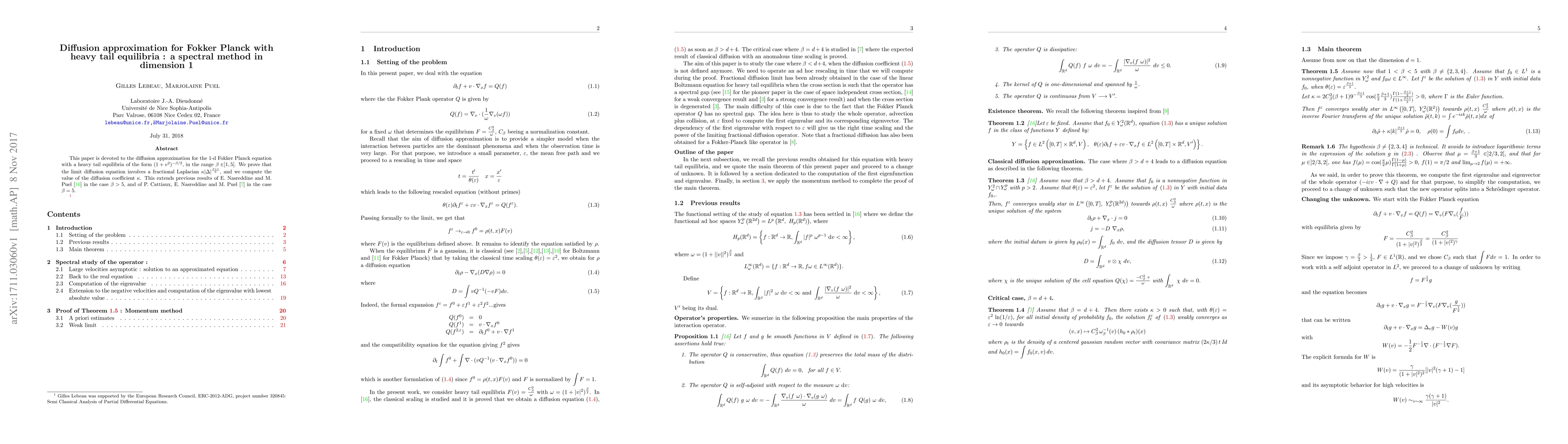 This paper investigates the diffusion approximation for the 1-d Fokker-Planck equation with heavy-tailed equilibria, proving that the limiting diffusion involves a fractional Laplacian. The authors compute the diffusion coefficient and extend prior results for β in the range 1 < β < 5.