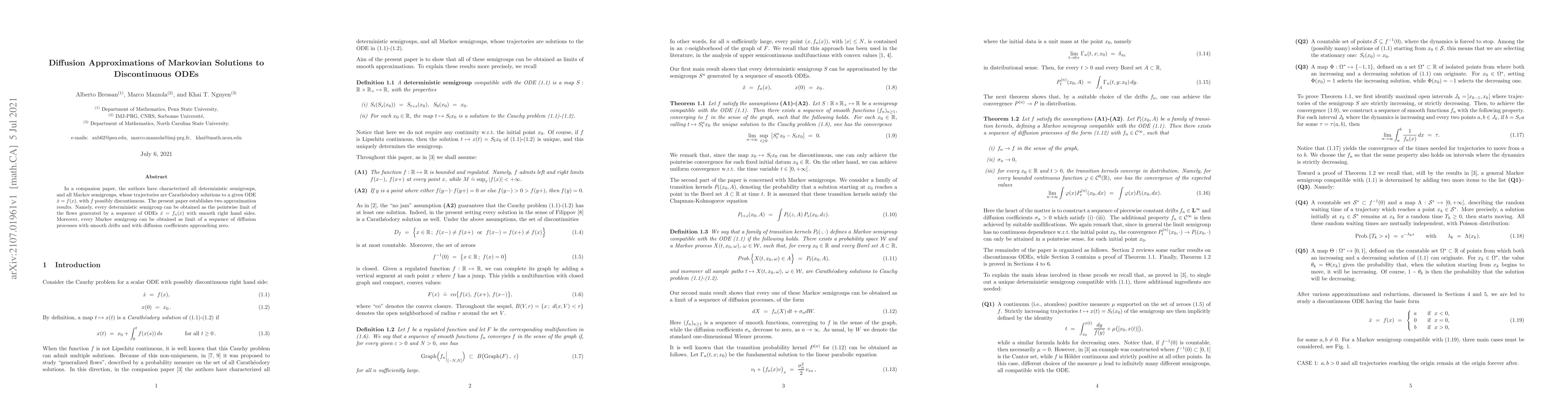In a companion paper, the authors have characterized all deterministic semigroups, and all Markov semigroups, whose trajectories are Carathe'odory solutions to a given ODE x'=f(x), with f possibly discontinuous. The present paper establishes two approximation results. Namely, every deterministic semigroup can be obtained as the pointwise limit of the flows generated by a sequence of ODEs $x'=f_n(x) with smooth right hand sides. Moreover, every Markov semigroup can be obtained as limit of a sequence of diffusion processes with smooth drifts and with diffusion coefficients approaching zero.