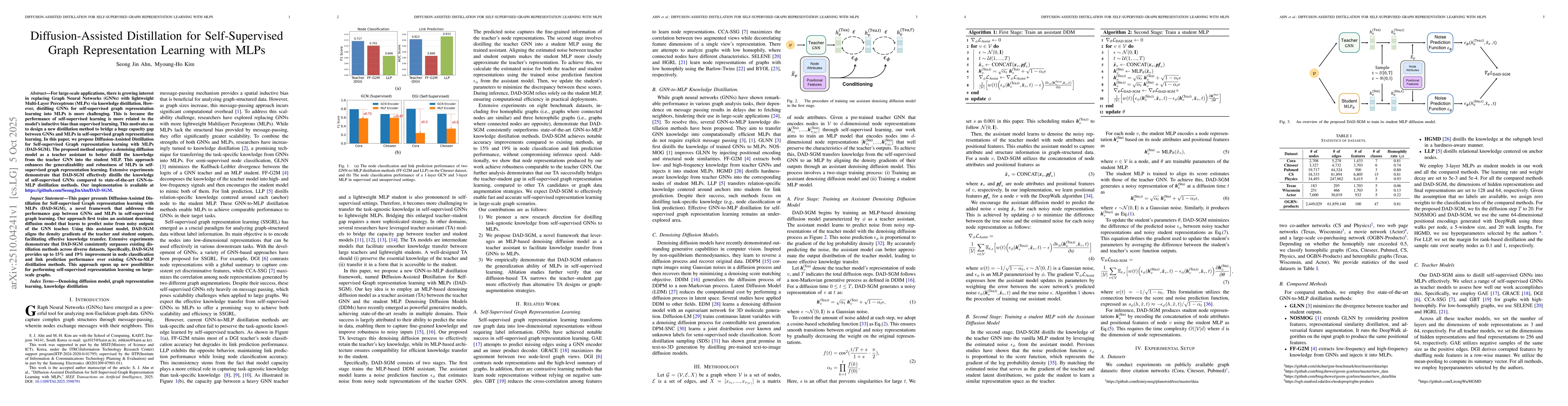 This work introduces a novel diffusion model framework for graph knowledge distillation, combining self-supervised learning with noise prediction mechanisms that differentiate it from traditional knowledge distillation approaches in graph learning.