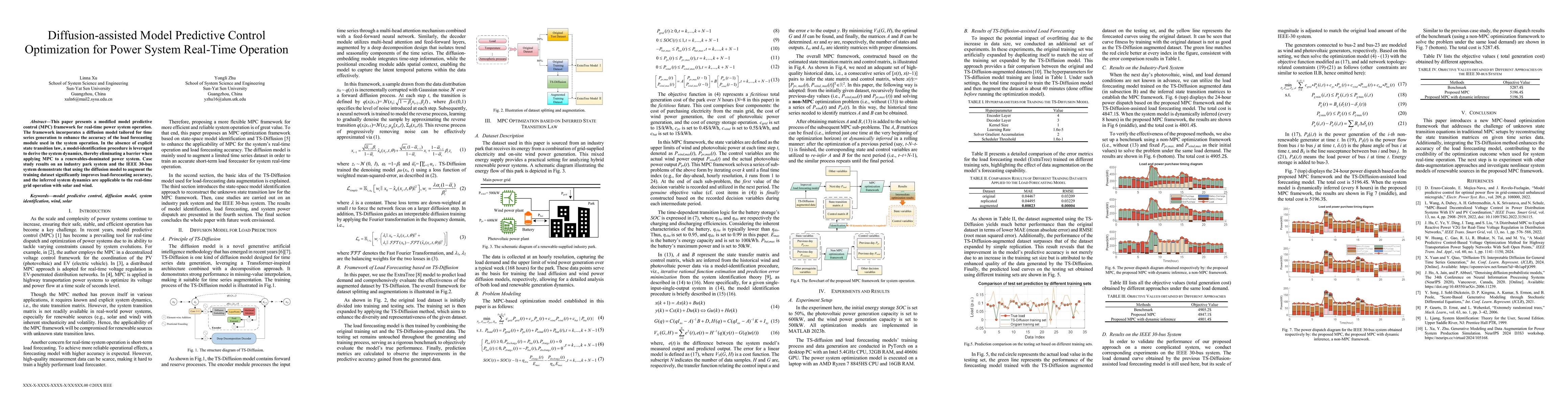The research proposes a modified MPC framework for real-time power system operation, integrating a diffusion model for load forecasting and utilizing a model-identification procedure to derive system dynamics in renewables-dominated systems.